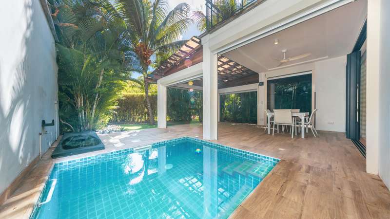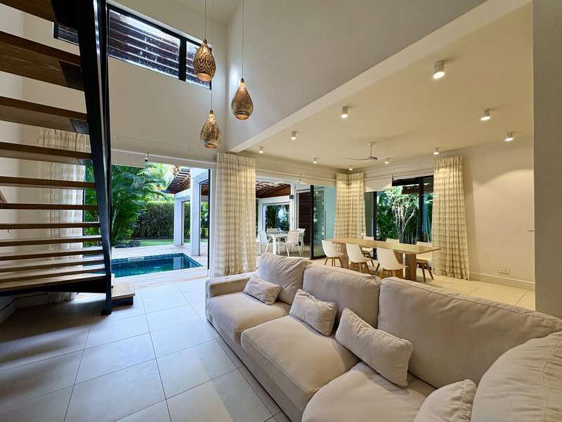 For sale: This 3-bedroom townhouse in La Balise Marina offers the perfect balance of comfort, space, and waterfront living. The open-plan ground floor is ideal for easy everyday life or entertaining, with a bright living and dining area that flows out to a covered terrace fitted with electric shutters. The plunge pool adds a touch of relaxation, and the layout invites indoor-outdoor living at its best. Upstairs, the bedrooms are spacious and welcoming, with good natural light and built-in storage. One of the key features is the private boat mooring for an 11-meter vessel—an ideal setup for sea lovers. Set within a secure, well-maintained marina with direct lagoon access, this property is a rare opportunity to embrace a coastal lifestyle in a sought-after location.