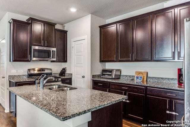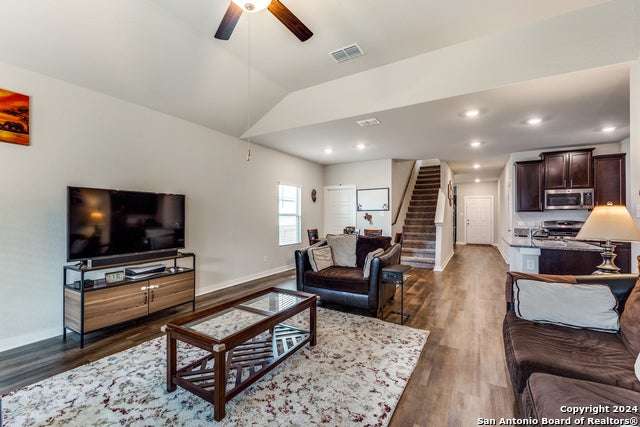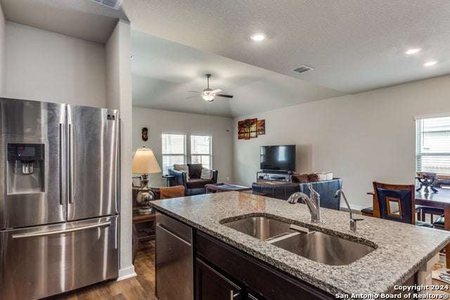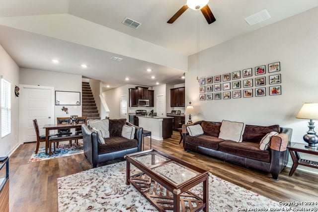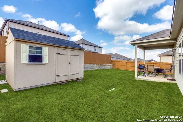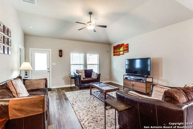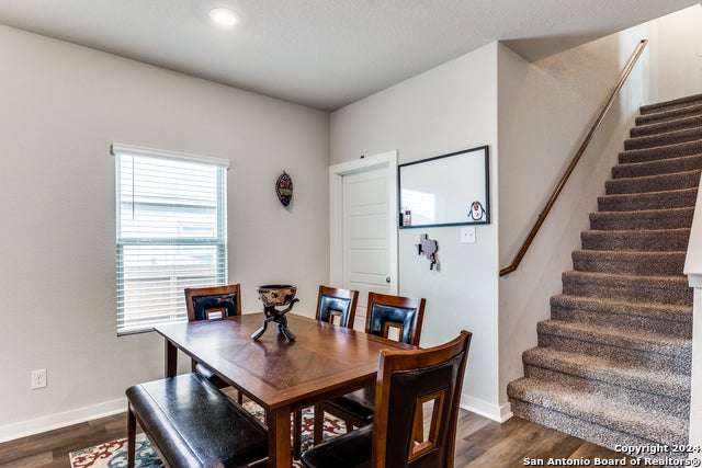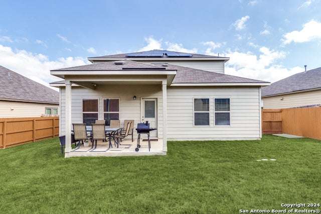 This impressively maintained home, built in 2020, boasts over 2,500SF of modern living space, featuring 4 bedrooms, 2.5 baths, and an office/dining room. An expansive upstairs loft adds flexibility, and the home comes loaded with top-tier upgrades, including a Nest Thermostat, solar panels (a $26k investment), a water filtration system, upgraded sink nozzles, cabinet hardware, and shower fixtures in the primary bath. Additional features include an outdoor shed, painted fence, and door chirp alarms. The primary bedroom, located downstairs, offers a spacious retreat with a full bath, dual sink vanity, walk-in shower, and walk-in closet. The living area shines with high ceilings, recessed lighting, ceiling fans, and beautiful laminate flooring. The open-concept kitchen features gas cooking, island with sink, granite countertops, crown-molded cabinetry, and stainless steel/black appliances. Upstairs, you'll find a versatile loft, 3 sizable bedrooms, all carpeted and equipped with ceiling fans, providing plenty of room for everyone. Outside, enjoy entertaining on a covered patio surrounded by painted privacy fence, plus a handy storage shed. This home is packed with thoughtful details and upgrades that make it stand out. Just 10 minutes to Randolph AFB. Come see for yourself and discover all the homeowner benefits waiting for you in this PRICED TO SELL (well below BCAD) exceptional home in Bridgehaven!