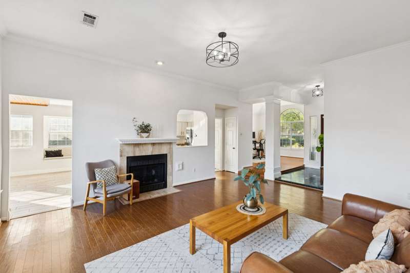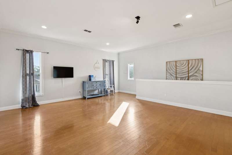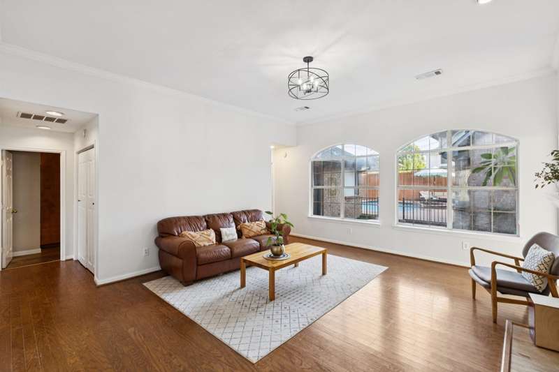 From the moment you step inside, you can feel how well this home was designed for everyday living. The layout flows effortlessly from room to room with true hardwood floors that bring a warm, natural tone throughout the space. The main level features three comfortable bedrooms thoughtfully placed for privacy, including a spacious primary suite tucked toward the back of the home with a generous closet and a well-appointed bathroom. The main living area sits at the heart of the home, connecting seamlessly to the kitchen, breakfast nook, and dining room, creating an open yet inviting environment that feels both connected and cozy. Every space transitions naturally, making it perfect for hosting friends, family gatherings, or quiet evenings in. Upstairs, an expansive flex room above the garage offers endless possibilities, this space could easily function as a secondary master suite, media room, game room, or home office. The space is versatile enough to grow and adapt with your needs. Out back, an open patio overlooking the pool provides a quiet place to relax or entertain. This home strikes that rare balance between comfort and practicality, offering a layout that feels natural, flows beautifully, and fits the way real life happens. Its the kind of place that just feels right from the moment you walk in.