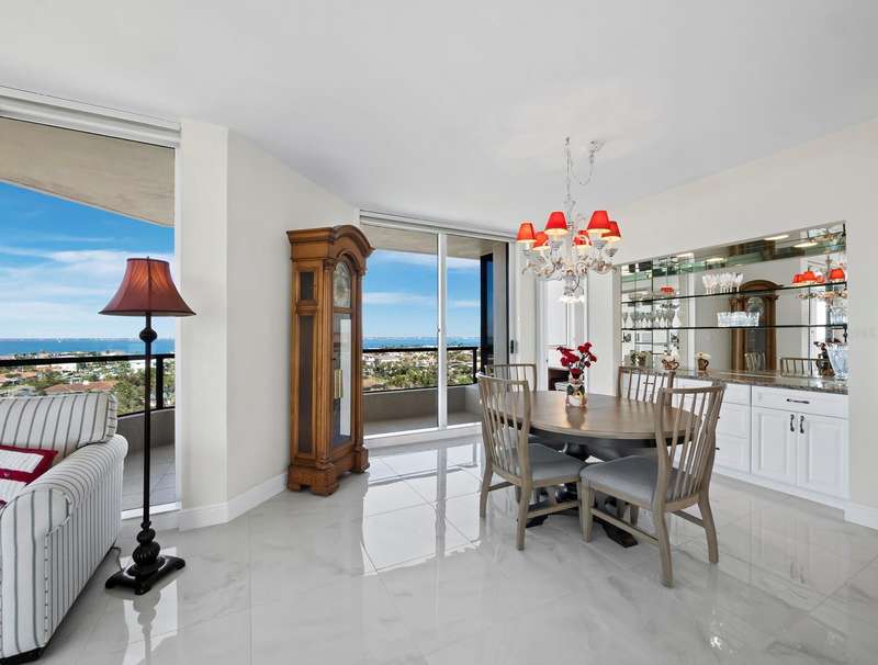 Immerse yourself in the ultimate beachfront lifestyle with this exquisite 6th-floor residence in the prestigious Promenade community, a serene sanctuary nestled on nearly seven acres of lush, park-like grounds along the pristine Gulf shoreline. Originally designed as a three bedroom unit, this newly renovated 2,100 square-foot condominium has been thoughtfully reimagined to offer two luxurious en-suite bedrooms and a versatile den, all meticulously designed to maximize breathtaking panoramic views from Gulf to Bay. Floor-to-ceiling windows and expansive glass sliders bathe the interiors in natural light and frame captivating vistas of the Gulf of America, Sarasota Bay, downtown Sarasota, and the Promenade's impeccably manicured landscapes. Step onto one of two private balconies to savor the gentle sea breeze and witness awe-inspiring sunsets over the horizon. Refined updates include new flooring, a rejuvenated primary bath, and a refreshed kitchen complete with modern appliances. The open-concept floor plan seamlessly blends the kitchen's cozy breakfast nook with an inviting living and dining area, creating a sophisticated space ideal for both relaxation and entertaining. The den offers flexibility as a home office or potential third bedroom. Residents of The Promenade enjoy an array of exceptional amenities, including a resort-style heated pool and spa, private beach access, Har-Tru tennis courts, a grilling station, concierge services, a state-of-the-art fitness center, 24-hour security, and secure garage parking. Ideally situated, this coastal retreat is just 2.5 miles from the world-renowned shopping and dining of St. Armands Circle and minutes from downtown Sarasota's vibrant arts and cultural scene. Discover a life of refined elegance and unparalleled tranquility in this remarkable Gulf-front residence.