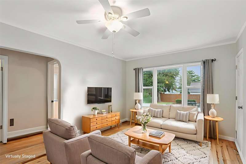 Fall in love with this charming Beaverdale bungalow that perfectly blends classic character with modern comfort. Featuring two bedrooms, a full bath, and beautiful hardwood floors throughout, this home is truly move-in ready. The updated kitchen opens seamlessly to the living areas, creating a bright and inviting flow ideal for everyday living or entertaining. The lower level is a standout with two egress windows, an anchored wall system, and endless potential; add a third bedroom, home office, second living area, playroom, or cozy retreat. Outside, enjoy your own backyard sanctuary with a fully fenced yard, lush landscaping, and a peaceful idyllic patio thats perfect for morning coffee or evening relaxation. A 1.5-car detached garage provides plenty of space for parking and storage or a workshop. Enjoy peace of mind with a new roof and water heater installed in 2021, plus a home warranty included for added assurance. Conveniently located near Beaverdales popular shops, restaurants, and parks, this home offers comfort, flexibility, and charm in one delightful package. Step inside and fall in love; your Beaverdale dream home awaits!