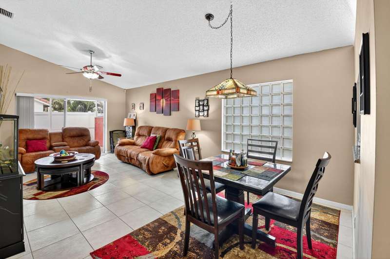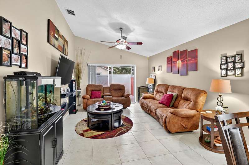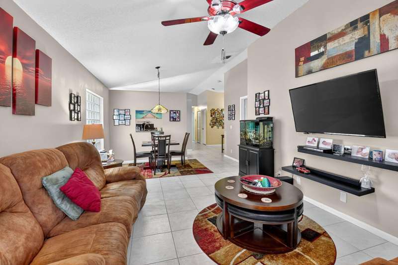 Step into this charming single-family home where thoughtful updates and inviting spaces create the perfect blend of comfort and functionality. From the moment you arrive, you'll appreciate the curb appeal and practical layout--featuring a 1-car garage and a spacious driveway that accommodates two vehicles. Inside, vaulted ceilings and tile flooring throughout offer an airy, low-maintenance living experience. The heart of the home is the updated kitchen, boasting granite countertops, newer cabinets, and a layout that flows seamlessly into the living and dining areas--ideal for everyday living and entertaining. Enjoy Florida living at its finest with a fully fenced yard and a screened patio, perfect for relaxing or hosting guests. The Owner's bathrooms features double sinks.