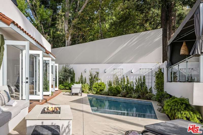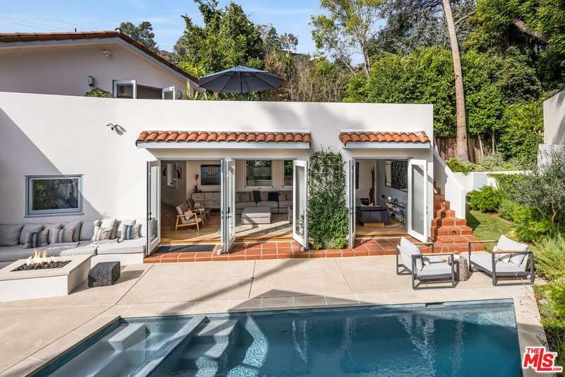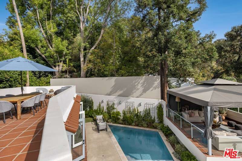 Nestled in the vibrant heart of Laurel Canyon, just minutes from the legendary Sunset Strip, this newly renovated ~3300sqft Spanish contemporary smart home embodies the essence of Hollywood Hills living. Located in the coveted Wonderland School District and eligible for Mulholland Tennis Club membership, this residence blends modern luxury with true bohemian spirit. The four bedroom and four bathroom main house features a spacious open-concept living and dining area, bathed in natural light, flowing seamlessly to an indoor-outdoor backyard oasis. Entertain effortlessly with a fire pit, pool & spa, and a rooftop BBQ & cabana lounge. The chef's kitchen boasts top-tier appliances, two luxurious primary suites offer spa-inspired ensuite bathrooms with steam showers, while a generous guest bedroom (with ensuite) and additional full bathroom on the main floor provide ample space for family or visitors. The detached two-car garage and extra private parking for two more vehicles, four spots in total, add convenience and functionality. The upstairs primary suite opens to a sun-soaked rooftop deck with treetop canyon views, perfect for sunset sound baths, morning yoga, or al fresco dining. The backyard boasts a separate ~600 sq. ft. guest house, complete with its own entrance, bedroom, bathroom, kitchen, and private outdoor space. Live the California dream in the canyon, where timeless charm meets contemporary elegance. Also available furnished - please inquire.