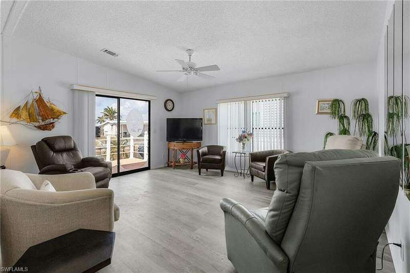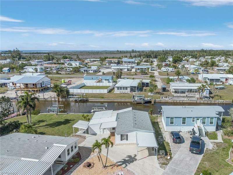 MOTIVATED SELLER- BRING AN OFFER. Oversized point lot. It is about a 10 minute boat ride to the open water of Pine Island Sound. - no lifts or bridges! You have your own NEW private dock and boat lift. Pine Island Cove is a well maintained and very desirable 55+ community in St James City. What a great opportunity to purchase this manufactured home with a brand new roof, A/C, flooring and appliances. The outdoor space on this home is unbelievable. And the unobstructed views to the canal are amazing. This home is located on the end of the street. This community is know for its friendly neighbors and activities that will keep you active all day long. The community swimming pool and spa are heated. There is bocce ball, pickleball, and shuffleboard. There is a community clubhouse for neighborhood gatherings. There is a community boat ramp. And, for $50.00 a year you can store extra trailers, or your RV. Pine Island Cove is a perfect seasonal or year round place to call home!