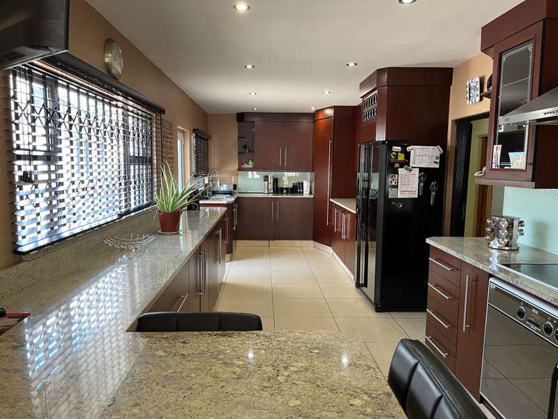 What a stunning modern home From the minute you walk in the door this home has a stunning homey feel about it.. Gourmet kitchen with granite tops and a real family feel Open plan lounge and dining room with lots of light. Four bedrooms two of them have dressing rooms Study of the main bedroom Main has en suite which has a jaccuzzi, double vanity and bidet. Third bedroom has dressing room/study All the bedrooms have lots of natural light 2nd bathroom is a full bathroom with a bidet and a double vanity. Pool ready for big family parties. Lovely garden Double garden Double carport One bedroom cottage One bathroom Lounge and dining room Beautiful patio facing the pool
