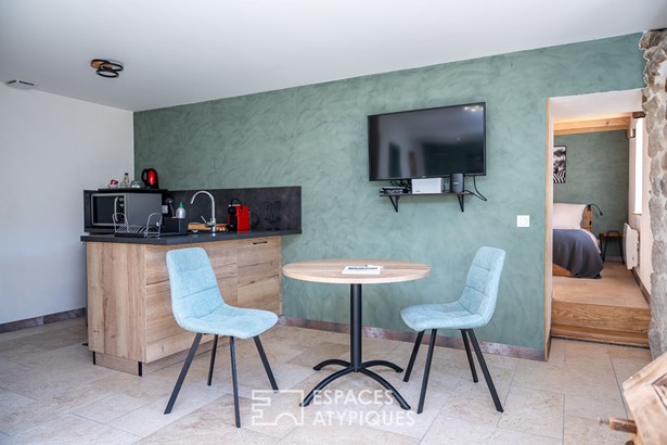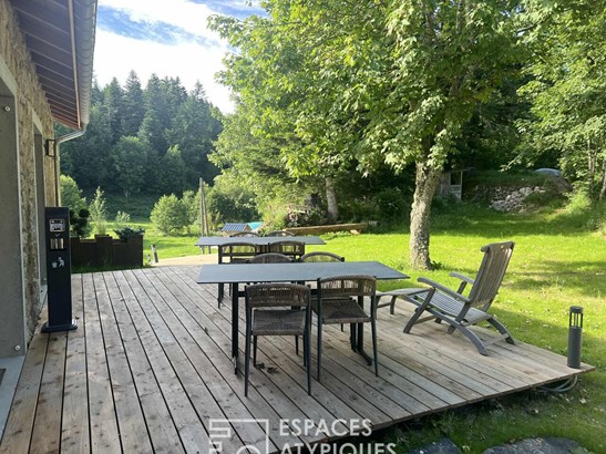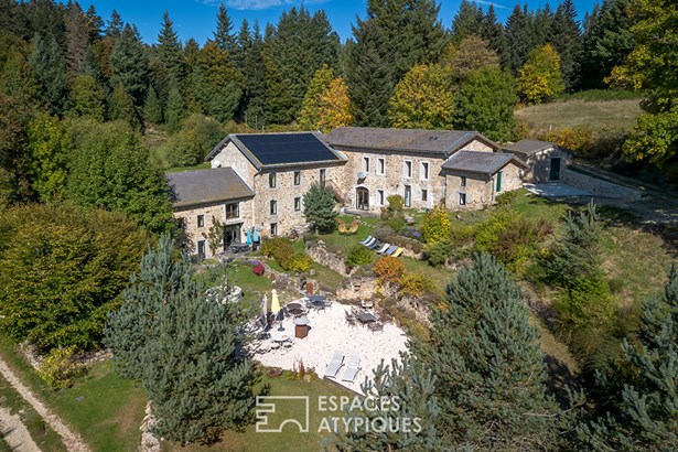 In a preserved natural setting, perched at an altitude of 1,000 metres, this renovated former industrial mill offers an unusual home and a turnkey accommodation. Bordered by a small stream, away from any nuisance, the property enjoys a peaceful and secluded environment, where family and professional life can be combined. The area offers a wealth of outdoor leisure activities, and this comfortable estate promises an active stay where you can recharge your batteries. At your feet, hiking trails lead to Lake Devesset and its water sports centre. Le Chambon-sur-Lignon, 10 minutes away, offers amenities and tourist attractions.