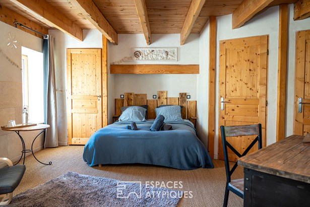 Sheltered by old walls, the terraces bask in the sun and offer views of the mountains. The property is set on 8,000 m2 of wooded land. A bread oven, a spring water fountain, an orchard and a vegetable greenhouse contribute to the site's self-sufficiency, while a trampoline and a gym with spa add to its appeal. A canopy and a car park also meet the needs of visitors. This estate, with a floor area of approximately 600 m2, offers several independent spaces. The house has a private area with 4 bedrooms, a shower room, an office and a bathroom with balneotherapy. The living room is centred around a dining room with a long table. It also opens onto a custom-built kitchen and a spacious lounge, nestled next to a monumental fireplace.