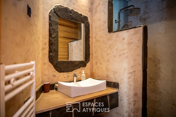 The 390 m2 of living space is spread over two floors and offers four guest rooms with their respective amenities. A shared kitchen extending onto a balcony terrace is available for guests' use, as well as two other access points to the garden for greater privacy.