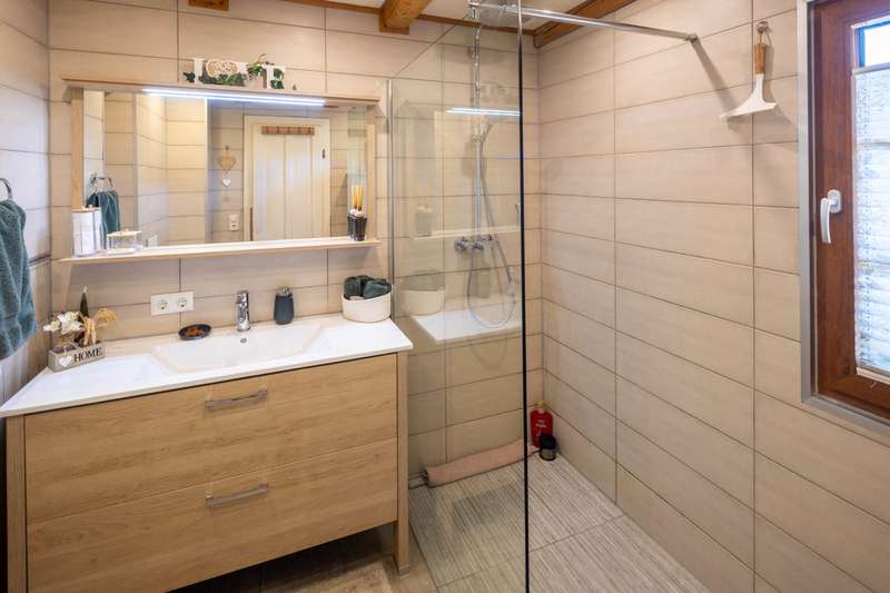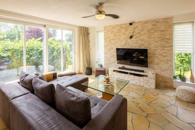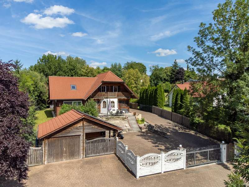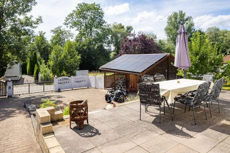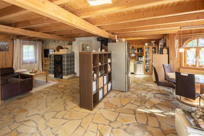 Energy-efficient detached house This well-kept, detached family home combines quality of living with sustainable technology and a location close to nature. The property is idyllically situated on the quiet outskirts of the village. Nestled on a gentle slope, it offers maximum privacy and quality of life on a plot of approx. 888 m². With a living space of approx. 151 m², the house welcomes its residents with generosity and an optimal room layout. Two bright, airy rooms form the heart of the first floor. The first room offers direct access to the sunny veranda, so that the interior merges with the view of the greenery - ideal conditions for relaxing hours or social gatherings. The second room also has direct access to the terrace. A stylish wood-burning stove emphasizes the homely atmosphere, while the Solnhofer natural stone slabs on the floor provide a high-quality and timeless base. Adjacent to the side is the kitchen, which forms the culinary center of the house with its functional design and equipment. An adjoining dining area offers space for convivial family meals. The first floor has a further room. The shower room is equipped with a walk-in shower, stylish tiles and tasteful fittings. A staircase leads to the upper floor, where there are four bedrooms. Here your family and guests can enjoy peace and quiet. A guest WC completes the upper floor. Whether you are a family looking for living space, flexible design options, sustainable energy solutions or simply a particularly healthy and pleasant living environment - this house meets all the requirements of modern and sustainable living in a prime location. We look forward to receiving your inquiry and the opportunity to present this property to you in person.