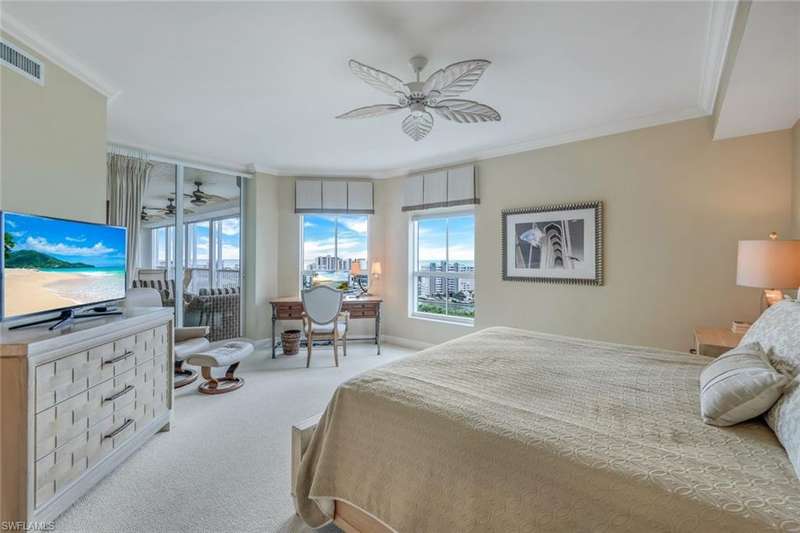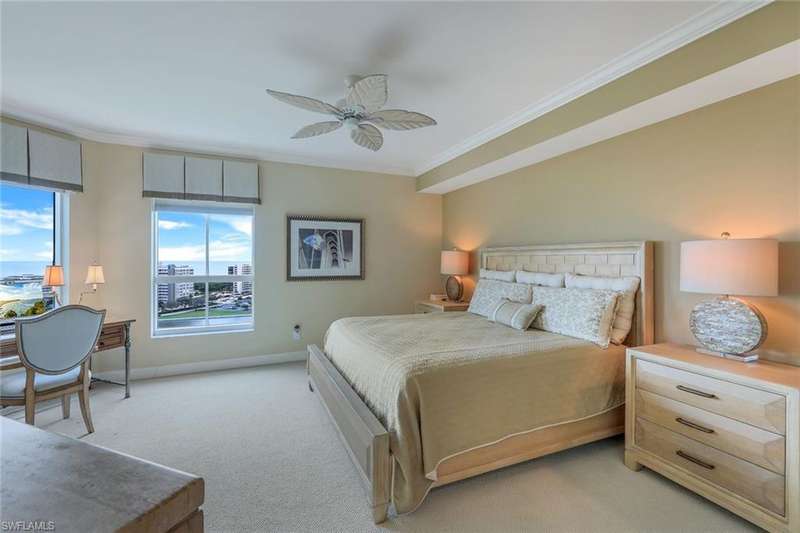 Experience luxury living at its finest in this exquisite 3-bedroom, 3.5-bathroom residence located on the 12th floor of The Dunes of Naples. With over 2,600 square feet of meticulously designed living space, this stunning condo offers unparalleled panoramic views of the Gulf of Mexico, serene nature preserves, and the surrounding coastline. Step inside to discover an open-concept layout that seamlessly integrates the living, dining, and kitchen areas, perfect for both entertaining and relaxation. The spacious living room flows effortlessly to the expansive screened-in lanai, where you can enjoy captivating sunset views year-round. The master suite is a true sanctuary, complete with breathtaking Gulf views, two walk-in closets, and a luxurious en-suite bath with dual vanities, a soaking tub, and a separate glass-enclosed shower. Both guest bedrooms are generously sized, each with its own private bath, ensuring comfort and privacy for family or visitors. As a resident of The Dunes, you w