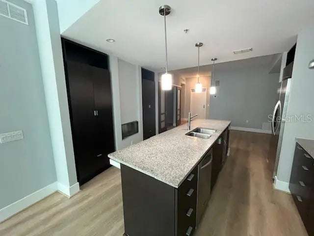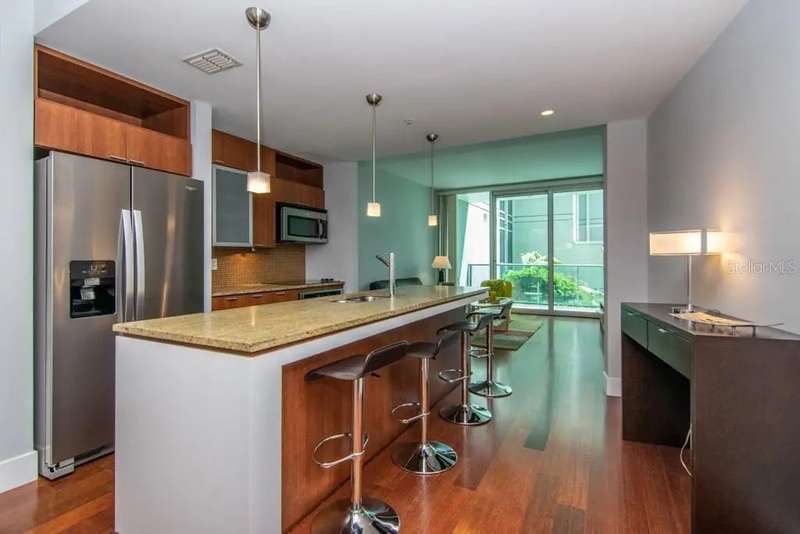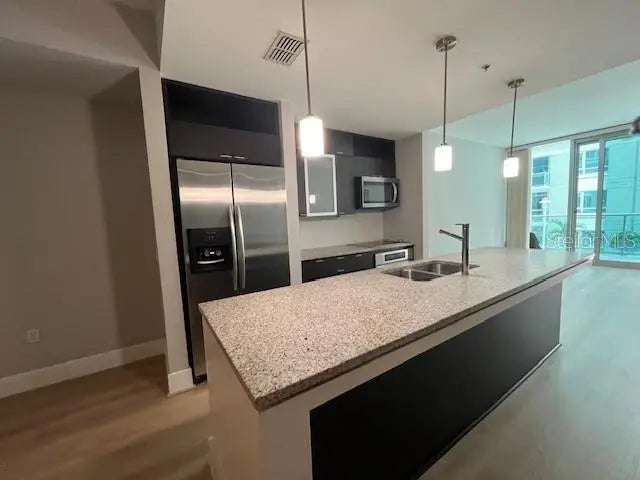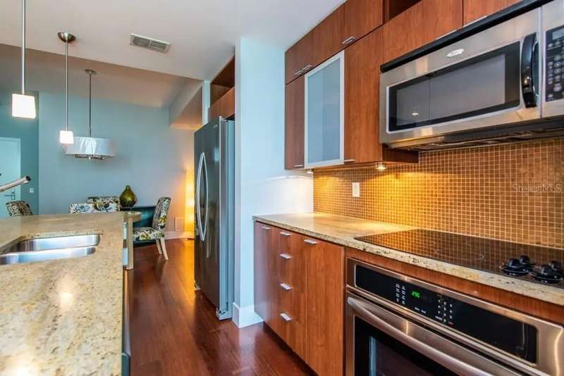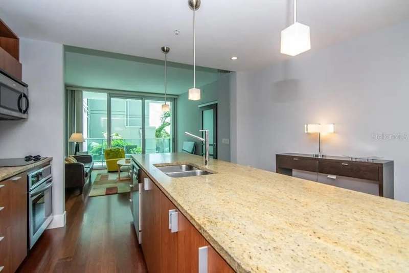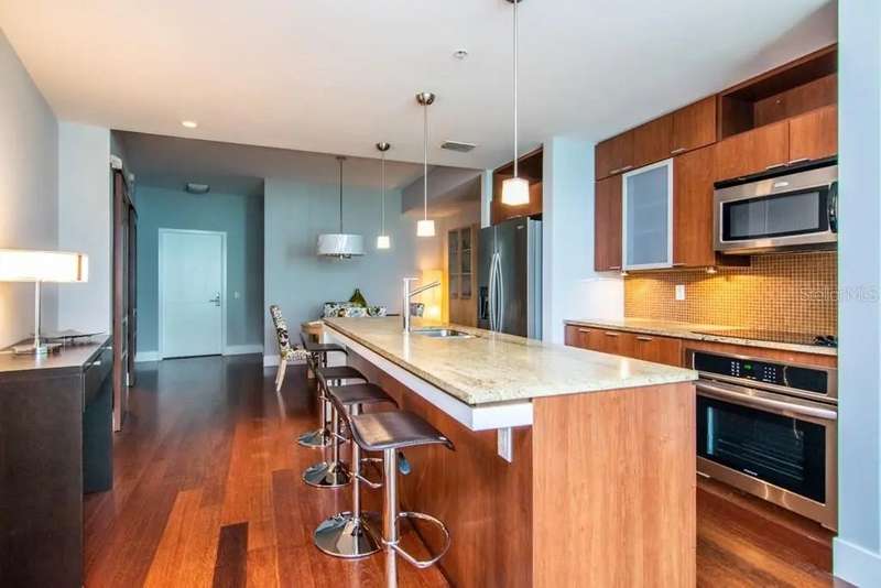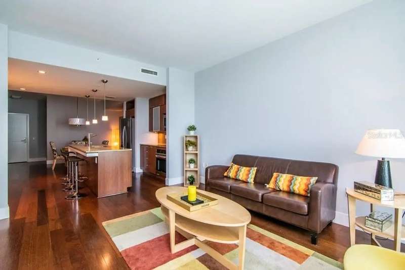 Beautiful, open and spacious 2 bedroom/2.5 bathroom with den and balcony comes with two parking spaces in tandem. Also comes with huge floor-to-ceiling glass windows in the living room. Enjoy your gourmet kitchen with large center-island granite countertops, sleek wood cabinetry, and stainless steel appliances. The home is light and bright with oversized sliding glass doors that lead to your glass walled balcony. The master bedroom boasts huge windows as well as a spacious walk-in closet. The en-suite bath boasts a granite vanity, separate tub, and shower. Open den area off kitchen with powder room accessible from living area. Indulge in resort-like amenities; luxurious pool/spa and surround, with lush landscaping, lounges, umbrella tables bar area and sauna with newly renovated fitness center. In the heart of the thriving Channel District with many shops, restaurants, and parks. Adjacent to Water Street Tampa with USF Morsani College of Medicine, Sparkman's Wharf and new Greenwise Publix.