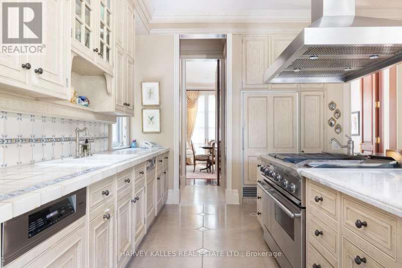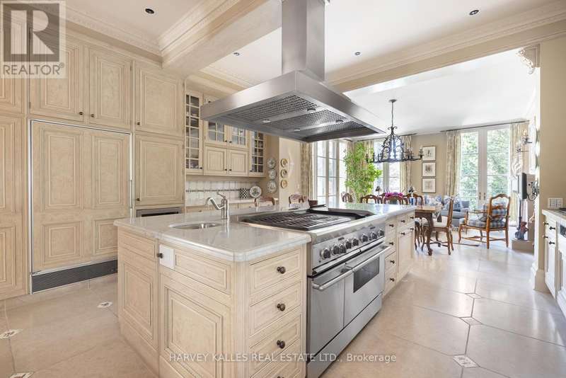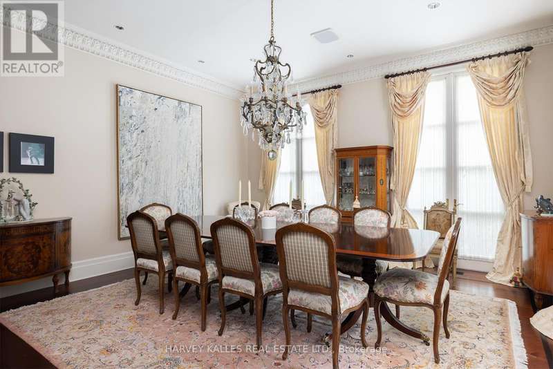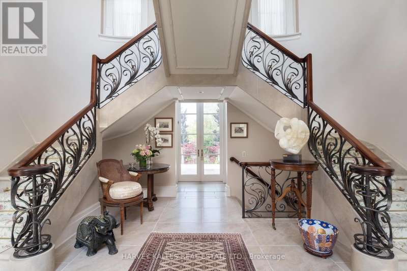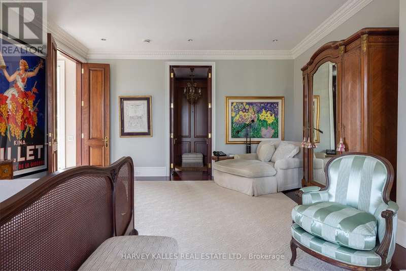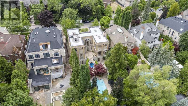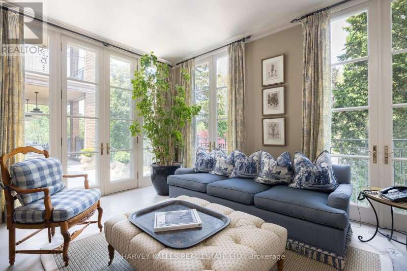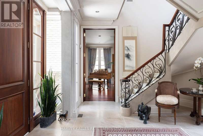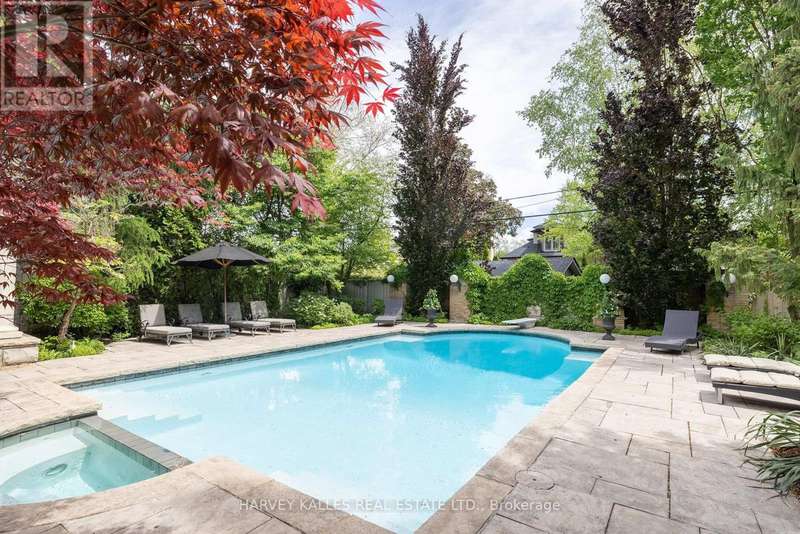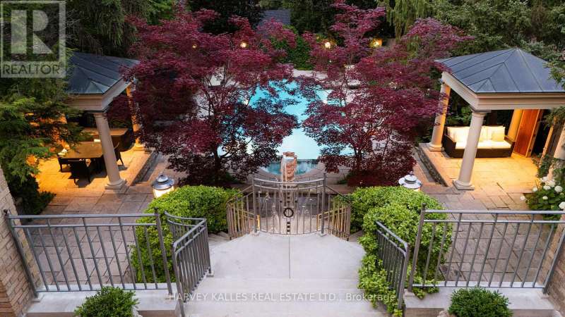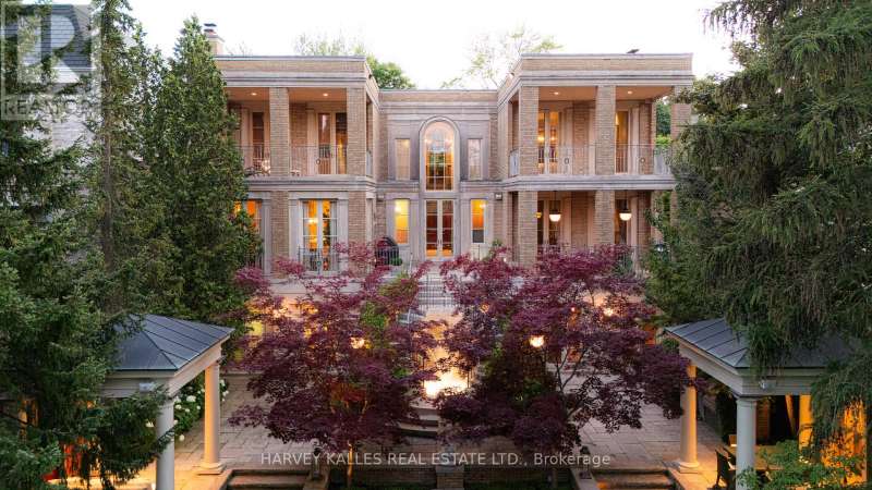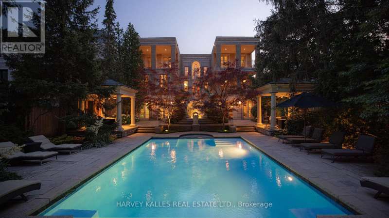 Majestically situated on one of Forest Hills most prestigious streets, this captivating residence masterfully designed by world-renowned architect Gordon Ridgely exemplifies timeless elegance and impeccable craftsmanship. Rooted in classical principles of symmetry, proportion, and balance, the home offers a remarkable blend of grandeur and comfort, ideal for both lavish entertaining and refined everyday living. A wealth of floor-to-ceiling windows, French doors, Juliette balconies, and multiple terraces bathe the interior in natural light, creating an airy, seamless flow throughout the living spaces. Exquisite finishes abound, including wide-plank mahogany hardwood floors and Indiana limestone flooring. The mahogany-paneled library, complete with a wood-burning marble fireplace, offers a warm and sophisticated retreat. A dramatic double staircase leads to the second level, where the serene primary suite features its own fireplace, a spacious walk-in dressing room, and walkout to a private covered terrace. The lower level is a haven for relaxation and recreation, boasting a full spa, entertainment and exercise rooms, and walkouts to beautifully landscaped gardens. Outdoor highlights include a charming gazebo, built-in BBQ, elegant fountain, and a stunning pool all shaded beneath a canopy of mature trees, providing an idyllic and private setting. An incomparable sense of privacy radiates timeless grace and charm, offering a sanctuary in the heart of the city. Perfectly positioned in an enviable location, this distinguished address places you within walking distance of Toronto's finest private and public schools, the boutiques and cafés of Forest Hill Village, premier recreational facilities, and just minutes from downtown and the financial district. (id:6370)