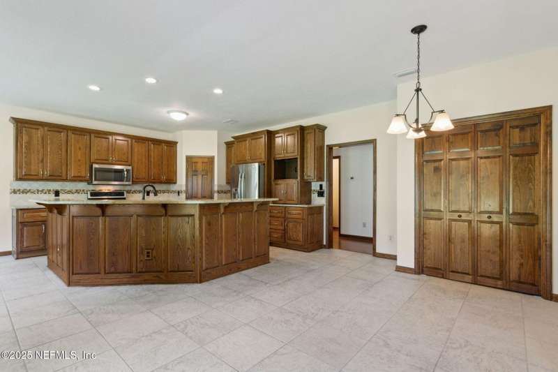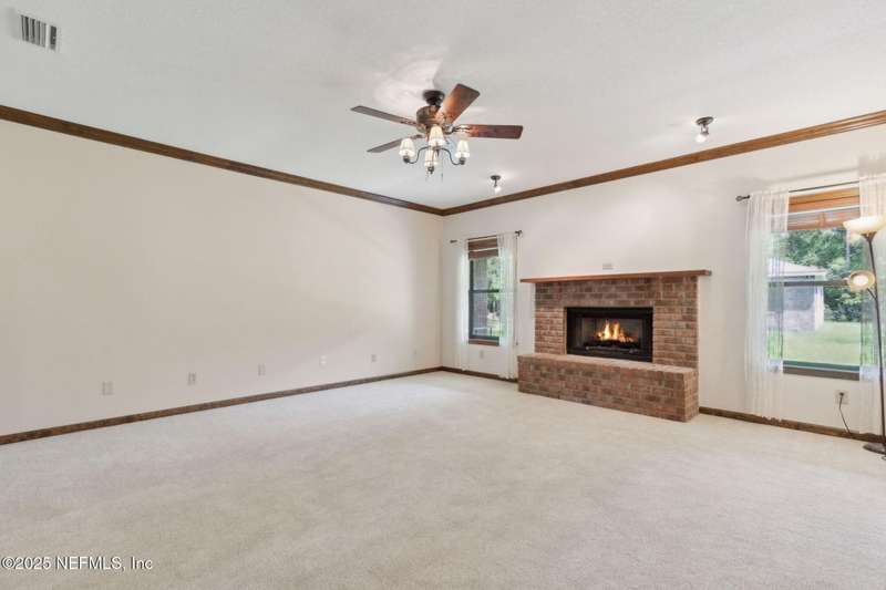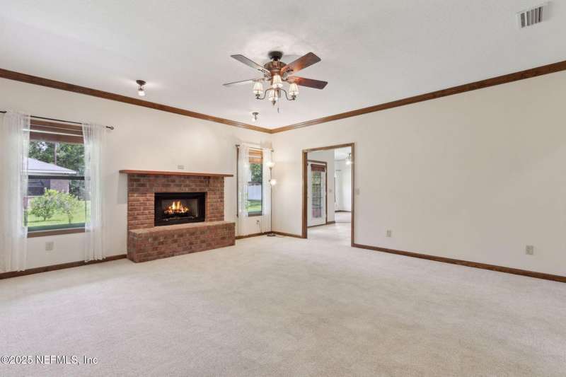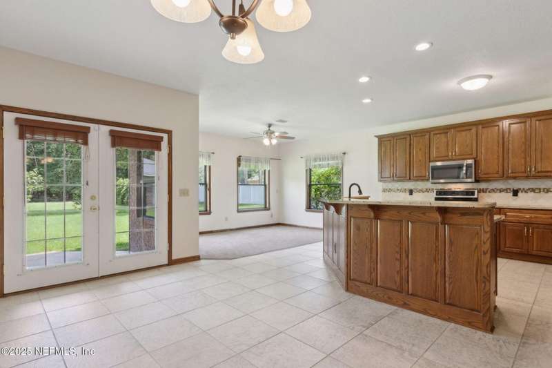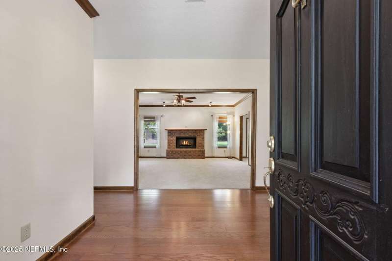 All brick classic home with 1300 sq ft garage/workshop! Covered front Porch large enough for rocking chairs and decor for the holidays! Foyer opens to great room with wood burning fireplace,notice custom height hearth. Kitchen with stunning wood cabinetry has granite countertops, breakfast bar, pull out shelving, dedicated microwave space and full sized pantry closet. Family room/TV area located off kitchen and breakfast bar. Off the foyer is spacious dining room with french doors. Could also be used for office. Half bath for guests is off the foyer/hall and inside laundry room has access to outside parking area. Two bedrooms have plenty of light with the sizable windows and share a jack and jill bath. Primary bedroom and spa style bath has two closets, linen closet and large shower with glass doors. The back covered porch is so inviting and looks over beautiful back yard. Nestled in one street neighborhood with mature trees, paved road and sidewalks for walk
