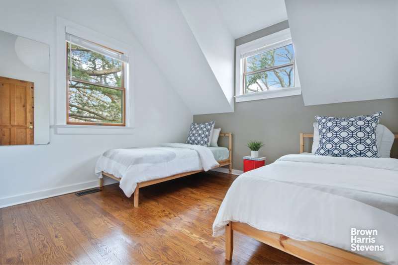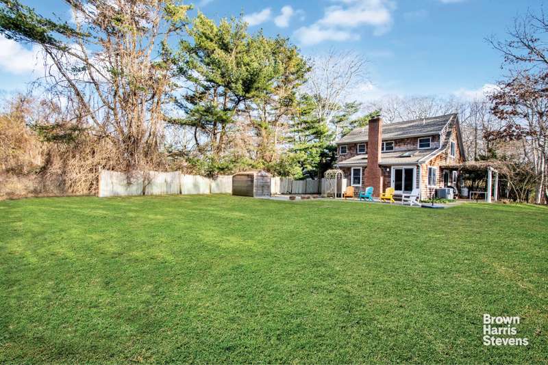 Enjoy the serenity of a coveted location between the beaches of Gardiners Bay and the Atlantic Ocean. This cedar shake cape-style home features an inviting entry foyer, a sun-filled living room and a gourmet kitchen that opens to a dining area with sliding glass doors to a private patio. The first level includes a good-sized bedroom with access to a full bath and separate entrance. A second-floor primary bedroom suite and two guest bedrooms share a large bathroom with a double vanity and walk-in shower. Outside, a lovely arched trellis leads to a stone patio overlooking the endless lush lawn. There is also a convenient outdoor shower. Only minutes away from the village as well as hiking trails, organic farm stands and miles of pristine beaches, this is a sensational summer and off-season retreat.