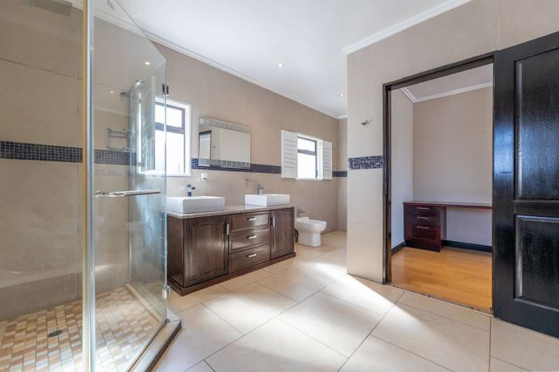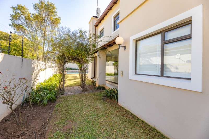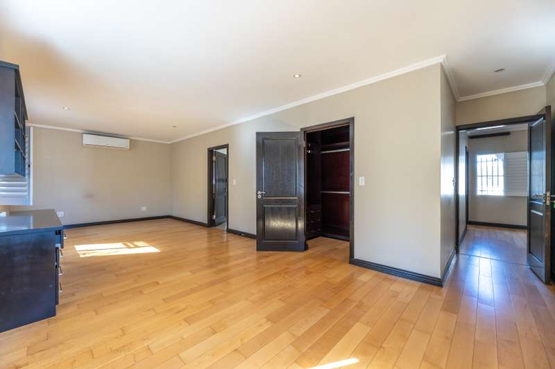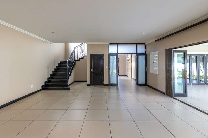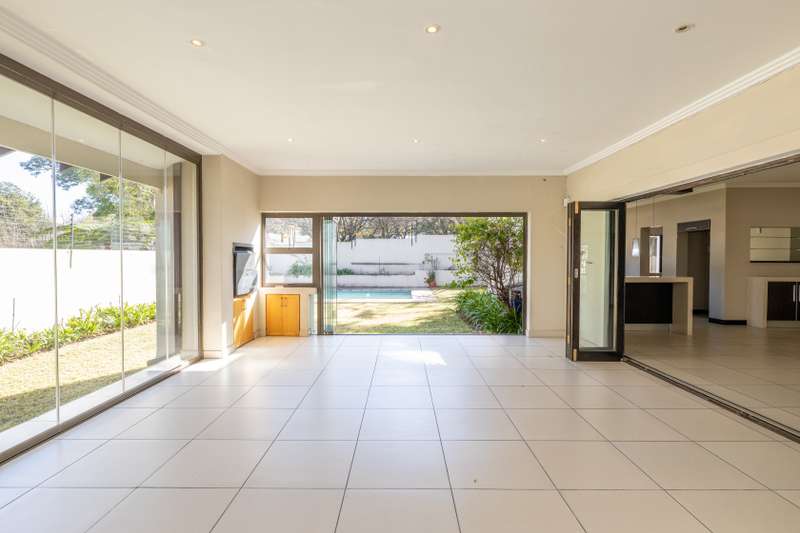 Ideally positioned within the sought-after Berkeley Heights Estate, this immaculate residence offers the perfect balance of elegant living, family comfort, and estate security — all just minutes from top schools, major routes, and key amenities in central Bryanston. The open-plan design seamlessly integrates two sophisticated lounges and a wellproportioned dining area, providing a fluid and welcoming space for both family living and entertaining. A modern, well-appointed kitchen features a gas hob, generous counter space, and a separate scullery—designed to meet the demands of everyday convenience and effortless hosting. An additional entertainment lounge invites relaxed gatherings, ideal for movie nights, sporting events, or informal entertaining. A guest cloakroom adds further practicality for visitors. Glass sliding doors open to a covered patio overlooking a manicured garden and sparkling swimming pool—a private sanctuary for outdoor living and leisure. Accommodation That Grows With You Upstairs, four generously sized bedrooms offer ample space and privacy: ? Two luxurious main suites, each with a modern en-suite bathroom and walk-in wardrobe - Two additional bedrooms serviced by a jack-and-jill shared bathroomAdditional Features Include: ? Triple garage plus a double carport, ensuring ample parking - Energy-efficient solar power system - 10,000L water storage tank, offering peace of mind during supply interruptions - Automated irrigation in a beautifully maintained garden - Full staff accommodation with two bedrooms and a bathroom - Comprehensive security including an electric access gate and alarm system Why This Home is the Ideal Choice for Your Family Offering a rare combination of central location, estate security, and expansive family living, this home is perfectly suited to growing families who prioritise convenience, lifestyle, and peace of mind. Contact us today to arrange your private viewing — this exceptional property meets every requirement for refined family living in Bryanston.