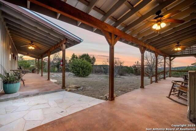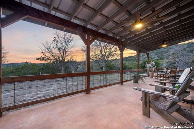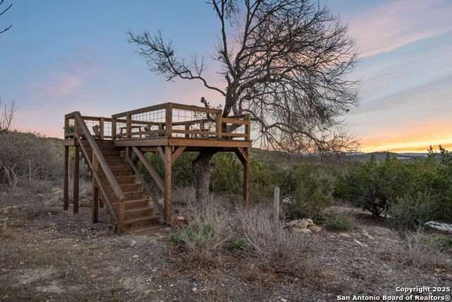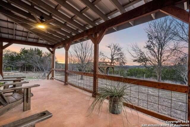 The Retreat @ Valley View is situated on 12+ VIEW Acres in the hills above historic Comfort TX and only minutes away from the Fredericksburg Wine Trail, Boerne, Sisterdale & Luckenbach. Offering privacy & seclusion with amazing views and nice usable acreage. the Retreat features 2 recently constructed structures built in 2020 that are the perfect palette to impart your vision of life in the Texas Hill Country. Beautifully designed and appointed, the Retreat offers an expansive "Gathering Room" with wrap-around porches overlooking the miles & miles of drop-dead gorgeous valley views. The Gathering Room features a kitchen w/custom cabinetry, gas range, refrigerator & leathered granite counters plus a built-in banquet w/storage. The views are spectacular. A laundry/utility room provides extra refrigerator & laundry facilities and a bathroom w/shower adjoin the Gathering Room via a covered dogtrot. The Bunkhouse is comprised of 2 spacious Bunkrooms each offering built in bunkbeds (2 plus a queen size bed in one and 4 built-in bunks in the other) and adjoin via a Jack & Jill bath w/shower and trough sink. The full length covered porch offers the same beautiful views as the main room. With no restrictions, this property is perfect for a Family, Corporate or Artist Retreat, a Short Term Rental, Glamping with room to expand. A functional workshop w/garage door & pedestrian door, Pole barns and Lean-To's provide additional storage or room for expansion. To round out this unique property high in the hills, a 16' high observatory deck is easily accessible and you'll never tire of the "miles & miles of Texas Hill Country Views" and starry nights. Other fun activities in the area include: Golf @ the Buckhorn, the Old No. 9 Railway Tunnel and other fun hill country jaunts. This is a truly special place to call yours in our beautiful Hill Country.