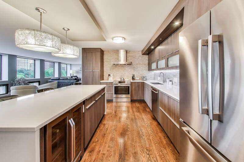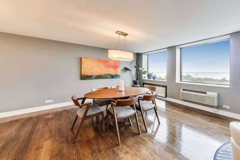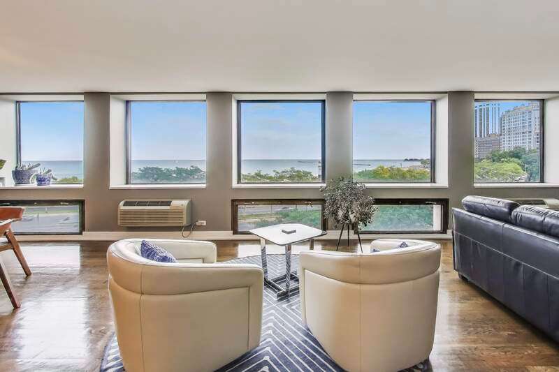 Stunning views of Oak Street Beach, Lake Michigan and the Lakefront Trail! Premier location for beach, shopping and dining. The epitome of all that's great about Chicago. This home truly has it all!! A gracious foyer leads to this impeccably updated home with Floor to ceiling windows that top the trees below. Real walnut stained hardwood throughout, designer lighting and updated baths. Large newer Chef's kitchen with quartz and high end appliances opens to the expansive living area. Primary Bedroom features cove lighting, a large walk-in closet and a western view. The spa like Primary Bath features heated floors, large shower with multiple shower heads, and double sink. All 3 bedrooms have western views and hardwood floors. The 2 1/2 bathrooms have been updated with the hall bath featuring neutral tile and a rain shower head. Recently the current owner has added alabaster sills in the living room, new ac units in the bedrooms, hand crafted cabinetry in the office and freshly painted. There is an in-unit laundry, and multiple closets for storage space. This building has exceptional security and amenities which include 24 hour doorman, valet parking in garage, pool, sundeck, exercise facilities, party room, storage unit, and on site management and engineer. HOA includes all the amenities PLUS water, parking, security, TV/Cable, exterior maintenance, lawn care, scavenger, snow removal, Wi-Fi, and Internet access. Gorgeous unit that is move in ready! Quality renovation with solid core doors and the best hardware!