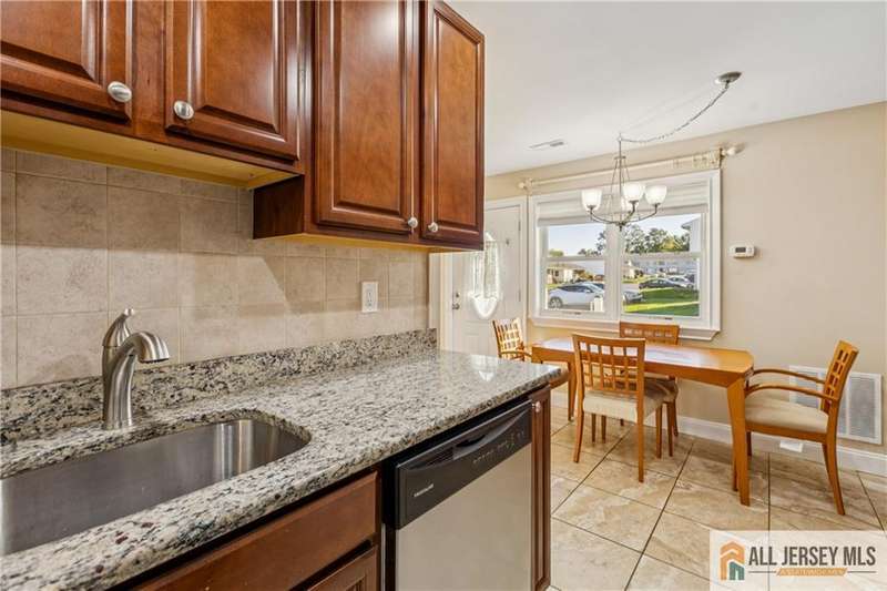 Welcome home to this lovely end-unit ranch-style condo in Cheesequake Village, an active adult community. Rebuilt from the ground up in 2014, this residence offers a modern, turnkey living experience. The gourmet kitchen features custom cherry cabinetry, granite countertops, stainless steel appliances, and ceramic tile flooring that continues through the hallway and full bath. Elegant custom moldings, upgraded interior doors, and durable luxury vinyl flooring enhance the overall design, creating a home that blends style and comfort seamlessly.