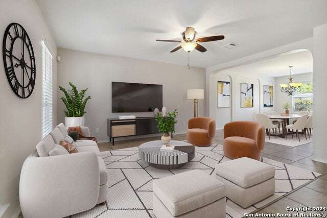 VA assumable loan at 3.5%!!! Conveniently located across the street from one of two neighborhood pools, this meticulously well maintained home in sought after Wildhorse subdivision includes two living areas, two dining areas and a game room! The primary bedroom boasts a huge walk in closet. The spacious kitchen has updated backsplash and granite countertops. Kitchen appliances replaced in 2019. New water heater and water softener installed July of 2021. Upgraded A/C and heat pump in 2023. Fresh interior and exterior paint in 2024. Upstairs carpet and luxury vinyl plank flooring replaced 2019. The garage has cabinets, overhead shelving and a garage door opener. Wired for security and surround sound (speakers and security equipment convey with the home). Many more upgrades (see additional documents for a full list).