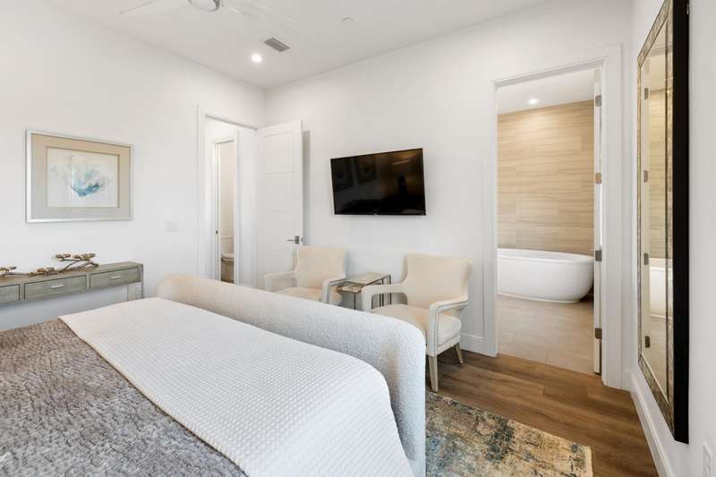 Welcome to 2182 W County Highway 30A, an exceptional coastal modern residence in the gated community of The Crest at Blue Mountain Beach. This luxurious Gulf-view home sits directly on 30A, offering effortless access to the best dining, shopping, and experiences along the Emerald Coast. Floor-to-ceiling windows flood the interior with natural light and frame breathtaking coastal scenery. With six bedrooms including two master suites each designed with a soaking tub, separate shower and walk-in closet and two additional en-suites, the home blends elegance and comfort for family and guests alike.The main living area showcases an refined open-concept design with a wet bar including an ice maker and wine fridge ideal for entertaining, while a second living room with its own ice maker provides a relaxed space to unwind. The private rooftop deck is simply stunning, featuring a grill, wet bar, and half bathperfect for hosting sunset dinners or enjoying panoramic views of the Gulf.A private elevator serves all levels of the home, while the fenced backyard with a fire pit offers a serene outdoor retreat. Within the community residents enjoy access to a resort-style pool, spa, and private cabana. Additional highlights include a two-car attached carport, a detached golf cart garage and an included six-seater golf cart.Just steps from the beach and walking distance to local favorites like Cowgirl Kitchen, Red Fish Taco, Blue Mountain Bakery, and Blue Mountain Creamery, this home captures the essence of 30A living. With Gulf Place only 2.2 miles away and Grayton Beach just 2.5 miles down the road, 2182 W County Highway 30A offers the perfect combination of modern luxury, Gulf views, and direct access to everything 30A has to offer.