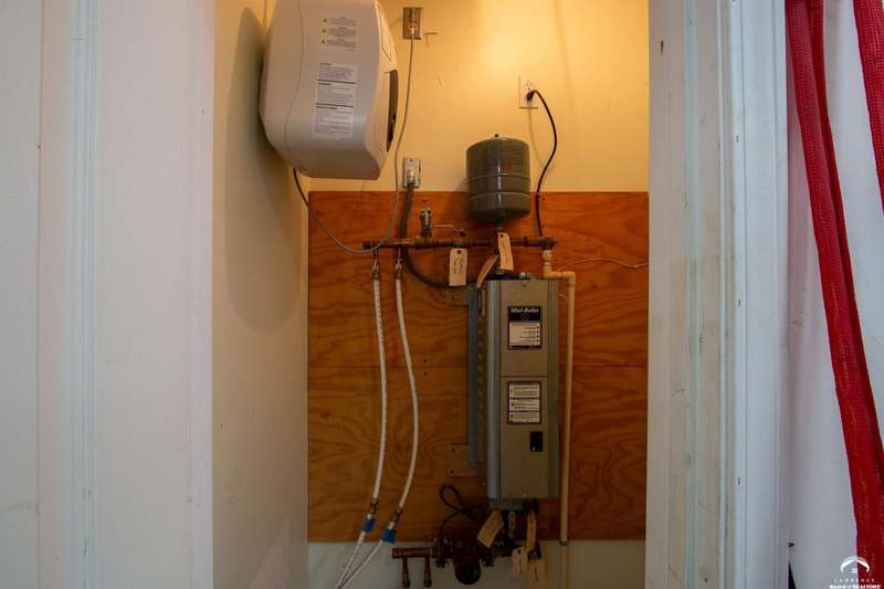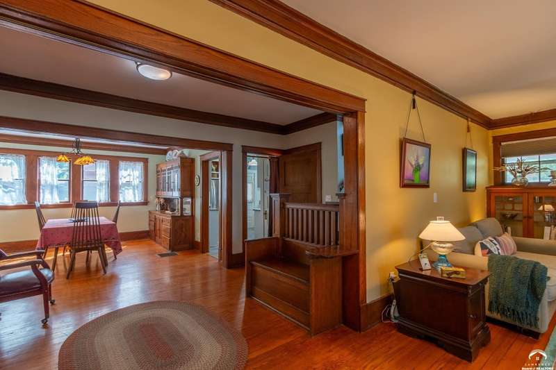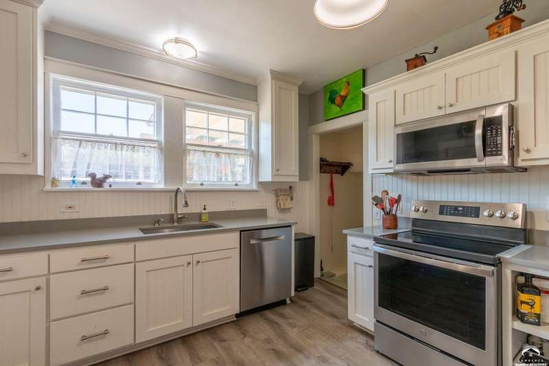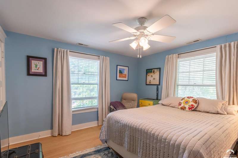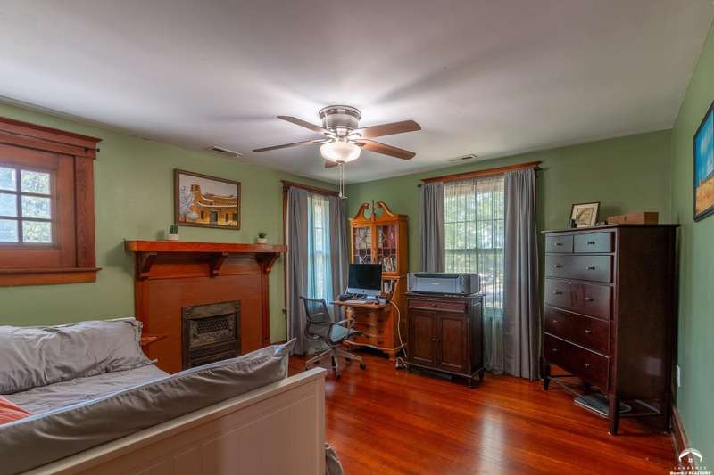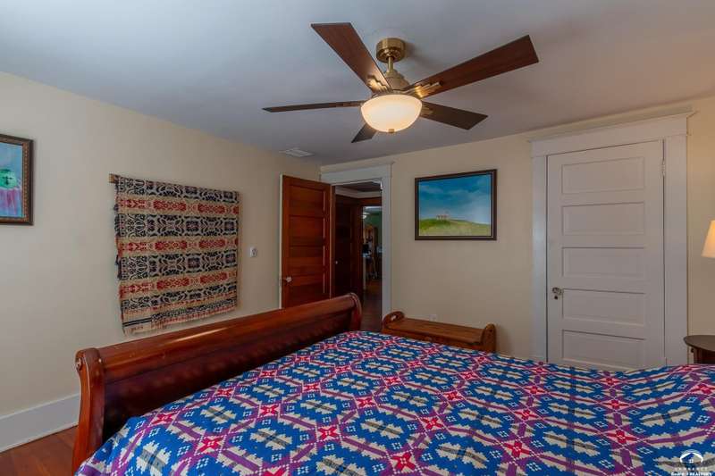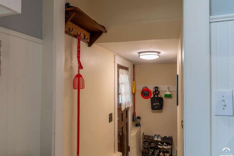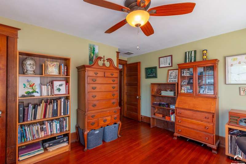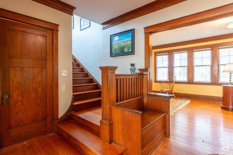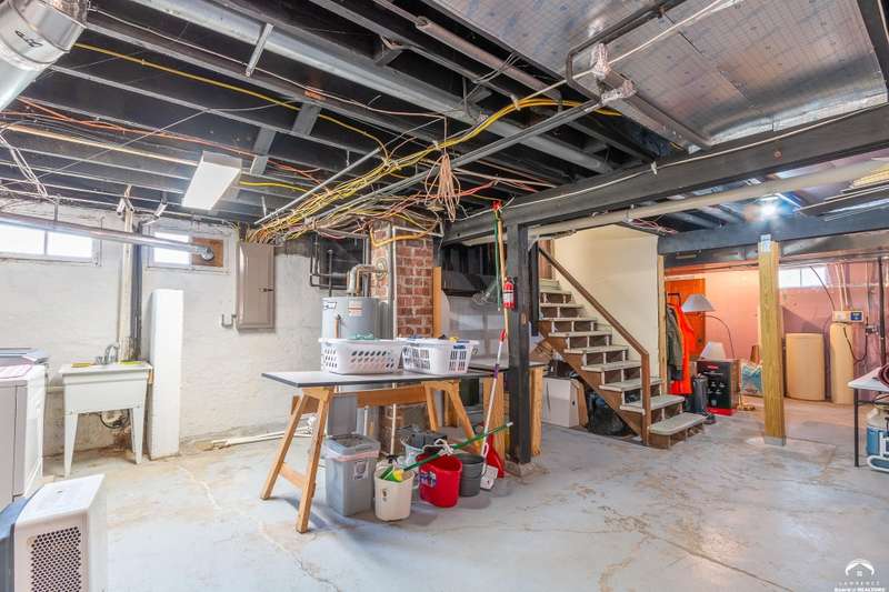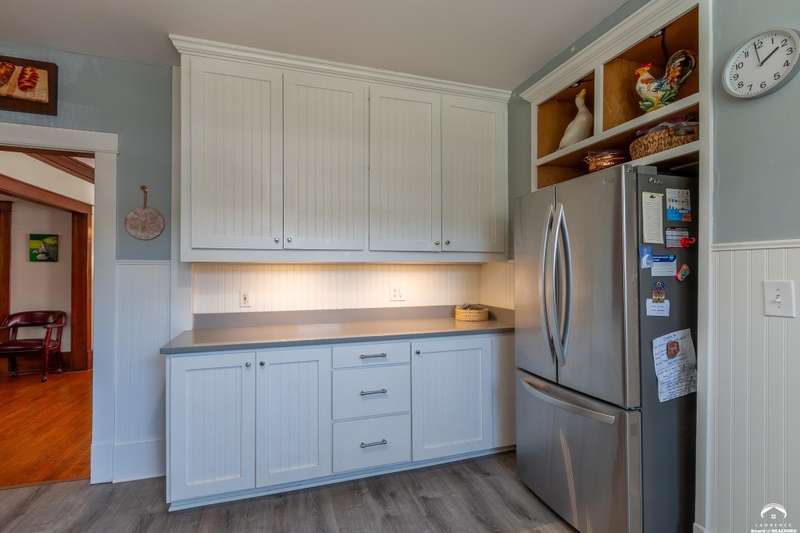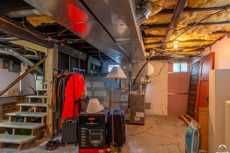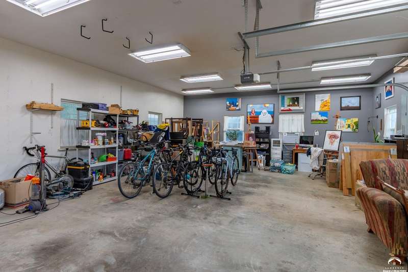 Charming and timeless, this enchanting 1915 home sits on a large corner double lot just outside of Old West Lawrence. Rich with original character and period details, you'll find historic millwork, crown molding, built-ins, hardwood flooring, glass doorknobs, and a stunning glass pocket door — all showcasing the craftsmanship of the era. The updated kitchen complements the home's heritage while preserving its cozy, welcoming feel and all appliances are new in the last 6 years. A flourishing wildflower/pollinator garden in the front yard delineated by the white picket fence. The fenced backyard features an inviting screened porch, a small deck, and a patio area next to a shaded garden. Hardscaping and low-maintenance native landscaping create a serene courtyard-style connection between the home and the newer 24x36 two-car garage plus studio —complete with radiant heated floors, a half bath, separate electric, and expansive attic storage. The full unfinished basement and original garage now in the backyard offer a wealth of storage—or take the stairs to the attic and let your imagination run wild with possibilities. This home invites you to appreciate its history while envisioning your future. Schedule your showing today!!