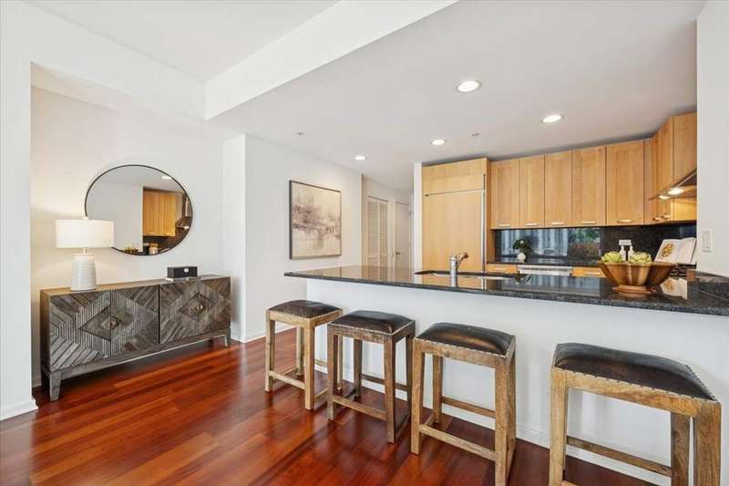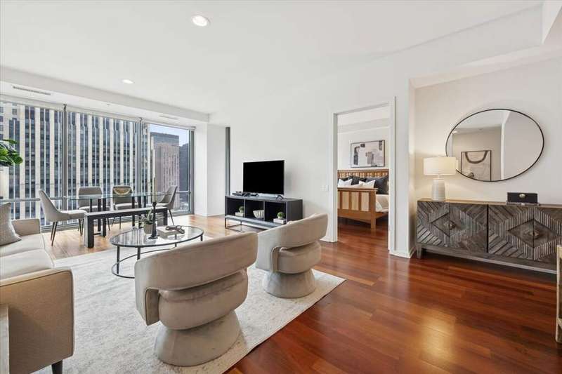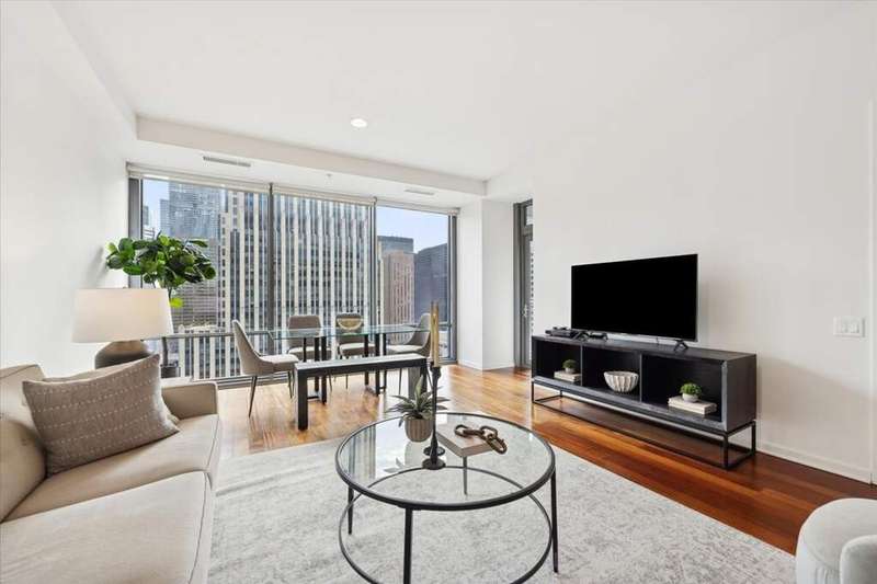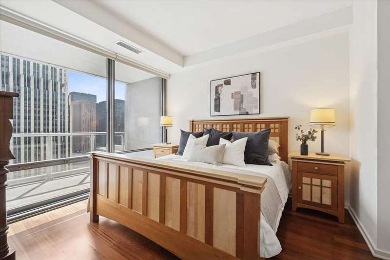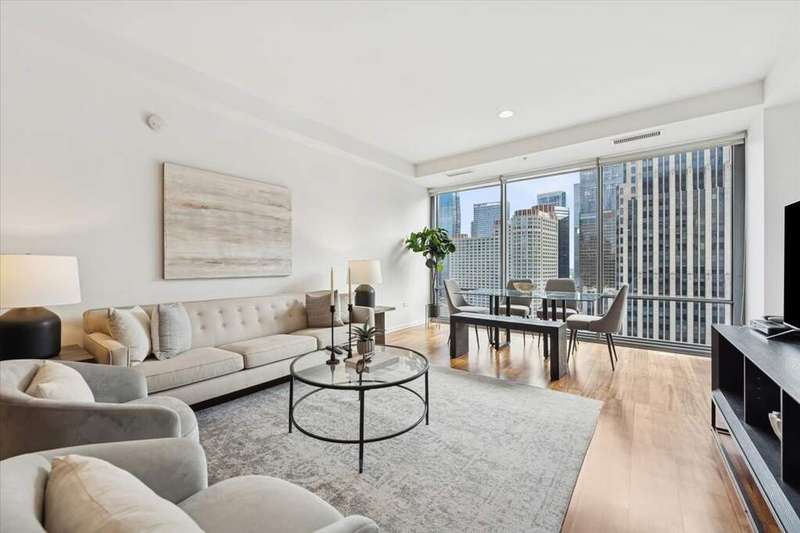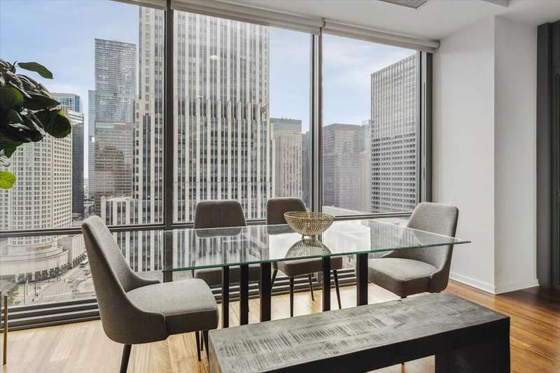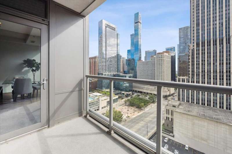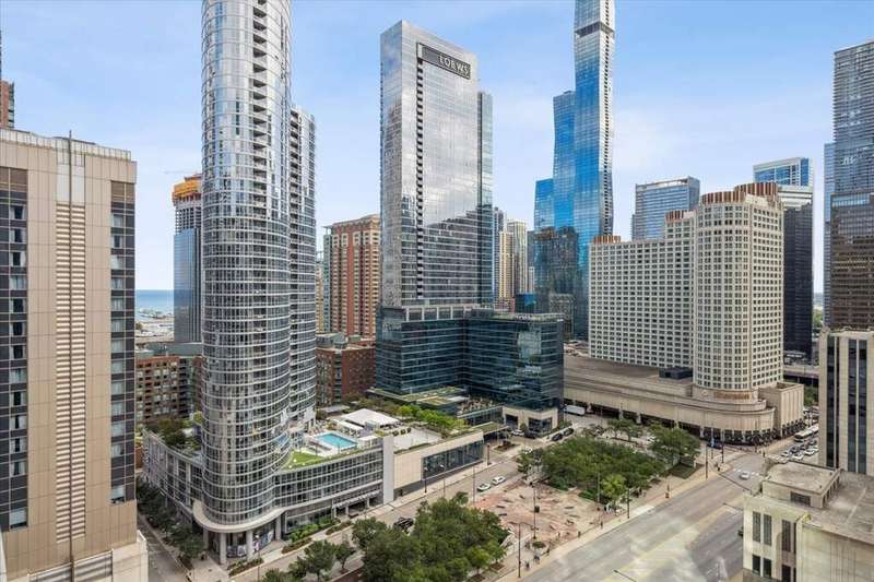 Experience stunning city views from the 16th floor of this two-bedroom + den, two-bath residence. An open floor plan enjoys an abundance of natural light as the living room, dining room, and kitchen flow together seamlessly, creating the perfect place to entertain. The kitchen features granite counters, stainless steel appliances, copious cabinet space, and a breakfast bar. A private balcony is the perfect place to dine al fresco, enjoy a cocktail, relax, and take in the glorious city views. The split floor plan allows the primary suite to occupy its own "wing" of the residence, providing a private and serene escape. This space features a graciously sized bedroom, two large closets, and an en suite bath with double sinks and an oversized shower. The opposite side of the home features a large second bedroom with ample closet space, an adjacent full bathroom with tub shower, and a den/office. A laundry closet with stacked, oversized washer/dryer completes this home. One deeded, attached garage parking space available for $50,000. 240 E Illinois is a full-amenity building offering an outdoor pool, gym, weight room, media room, business center, community room, indoor sauna, outdoor terrace area, and a dog run. Located in the heart of Streeterville, enjoy easy access to the riverwalk, eclectic restaurants and nightlife, world class shopping, convenient grocery stores, the lakefront, and public transportation. Welcome home!