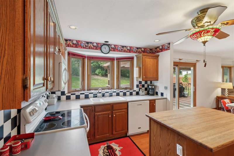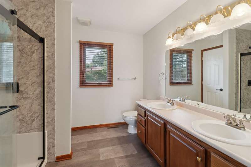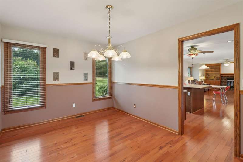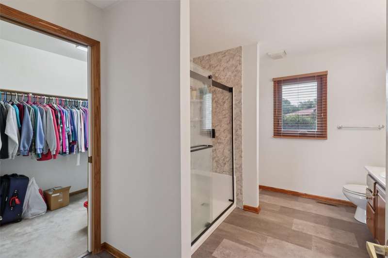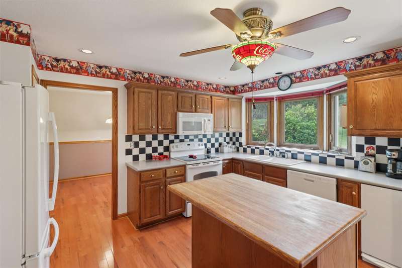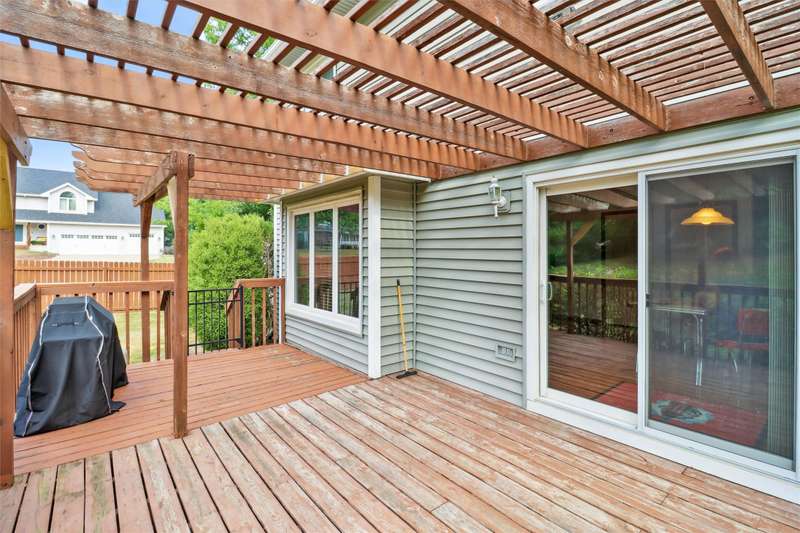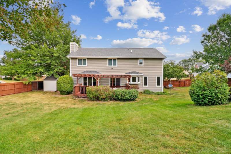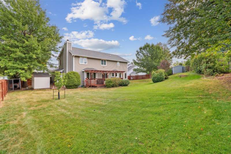 Desirable northside location on cul-de-sac! Spacious 4 bedroom two-story featuring updated roof, windows, siding & more. Welcoming front porch greets you & you'll notice the new hardwood floors on main level too! You will appreciate the family room with fireplace, dining area, 1/2 bath and second living space! Slider opens to large deck w/ pergola and views of the mature trees and nice yard, fully fenced. All 4 bedrooms (nice sized) are upstairs along with laundry room & primary remodeled bath w/ walk in shower & large closet. Newer carpet also. Lower-level features perfect space for hobby room, home office or gym or even a 5th non-conforming bedroom plus it features a 1/2 bath. Plenty of storage space downstairs also. 2 car attached garage plus additional parking pad. 2 garden sheds included & home warranty added too!