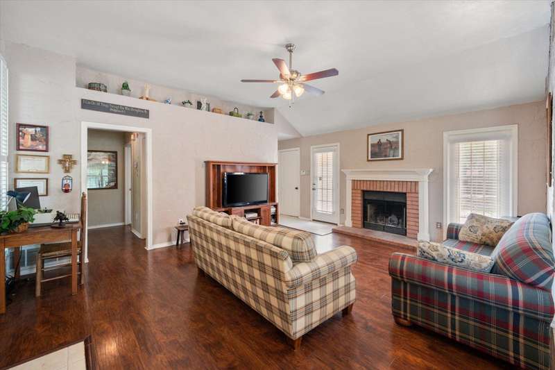 Welcome to this well-maintained and inviting 3-bedroom, 2-bathroom brick home located in a quiet neighborhood within Ennis ISD, just minutes from Lake Bardwell and historic downtown Ennis. Step inside to a welcoming foyer that opens to a spacious living room featuring a cozy wood-burning fireplace and an open floor plan perfect for everyday living and entertaining. The kitchen is filled with natural light and flows seamlessly into the dining area, creating a bright and comfortable space to gather. A small hallway just off the dining room leads to a dedicated laundry room and into the private primary suite, which features an ensuite bathroom with a separate shower and a peaceful retreat layout. The split bedroom design offers privacy for all, with two additional bedrooms and a full bath located on the opposite side of the home. Outside, enjoy a fenced backyard for added safety and privacy, along with a great back patio ideal for relaxing or entertaining guests. A 2-car garage with alley access provides added convenience. Notable updates include foundation work completed in 2019 and a new AC unit installed in 2024-giving you peace of mind and comfort for years to come. This home combines charm, functionality, and a fantastic location-dont miss your chance to make it yours!