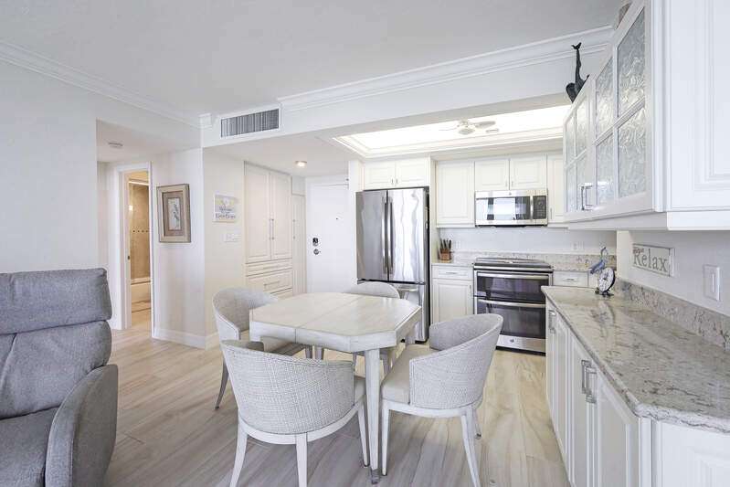 Experience the best of coastal living in this spacious and beautifully maintained 2-bedroom, 2-bathroom turnkey condo featuring expansive interiors and highly sought-after Gulf views. The remodeled primary suite includes an elegant en-suite bath with a walk-in shower, while the second bedroom offers a space-saving Murphy bed-perfect for guests or a home office. Custom built-ins throughout add both functionality and charm. The community has recently completed a full renovation of the pool area, including new pavers and stylish new pool furniture, creating a resort-style atmosphere. Located just steps from the beach and close to dining, shopping, and entertainment, this property offers the ultimate in convenience and coastal lifestyle. With direct beach access, incredible sunsets, and low-maintenance ownership, this turnkey condo is ideal as a full-time residence, seasonal retreat, or investment opportunity.
