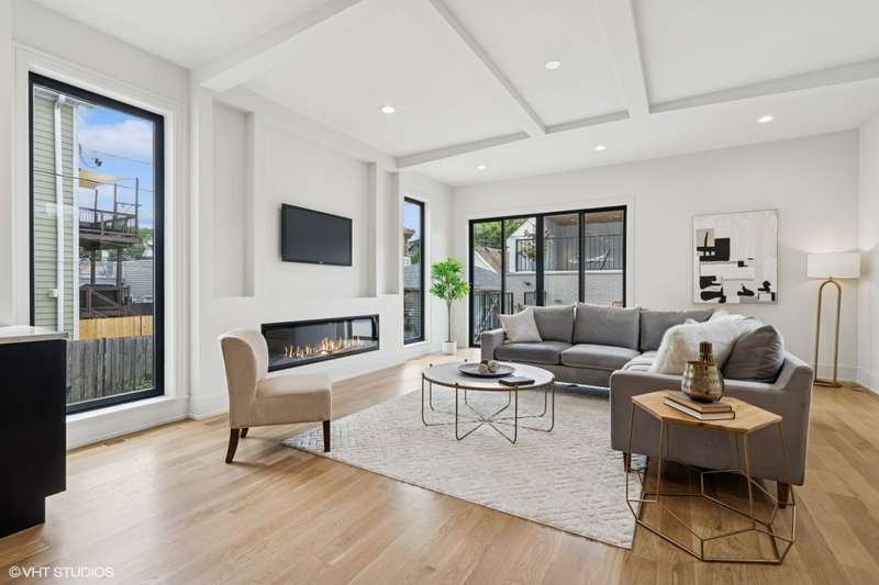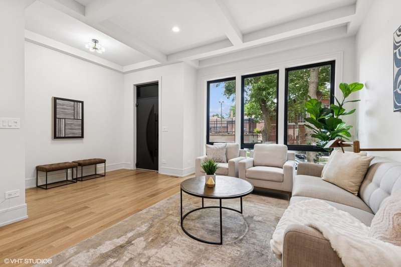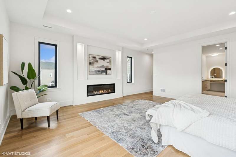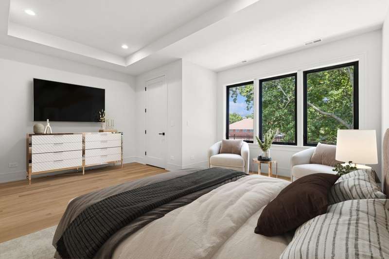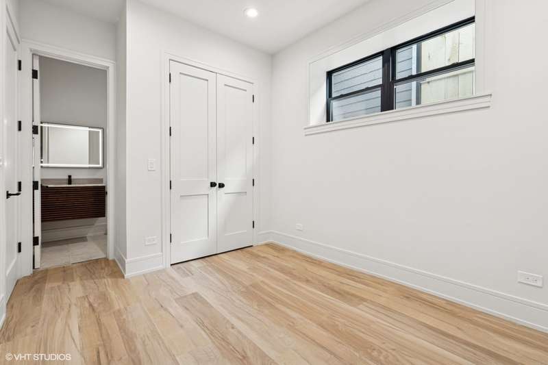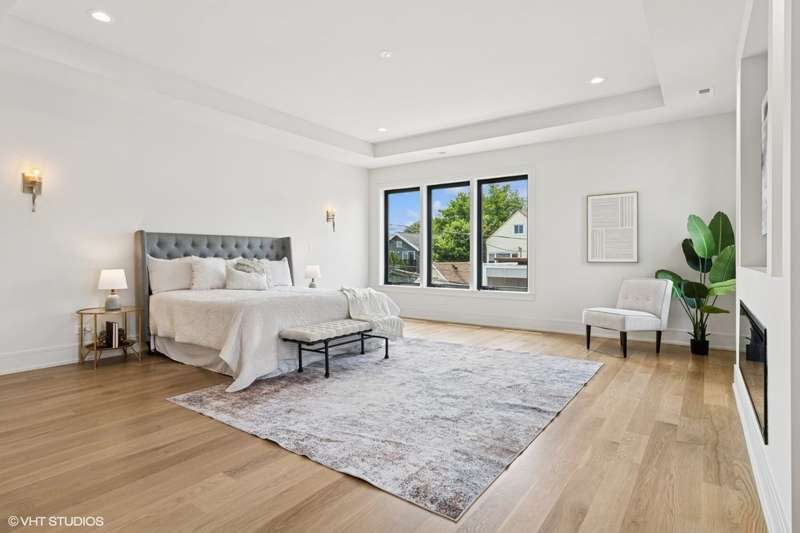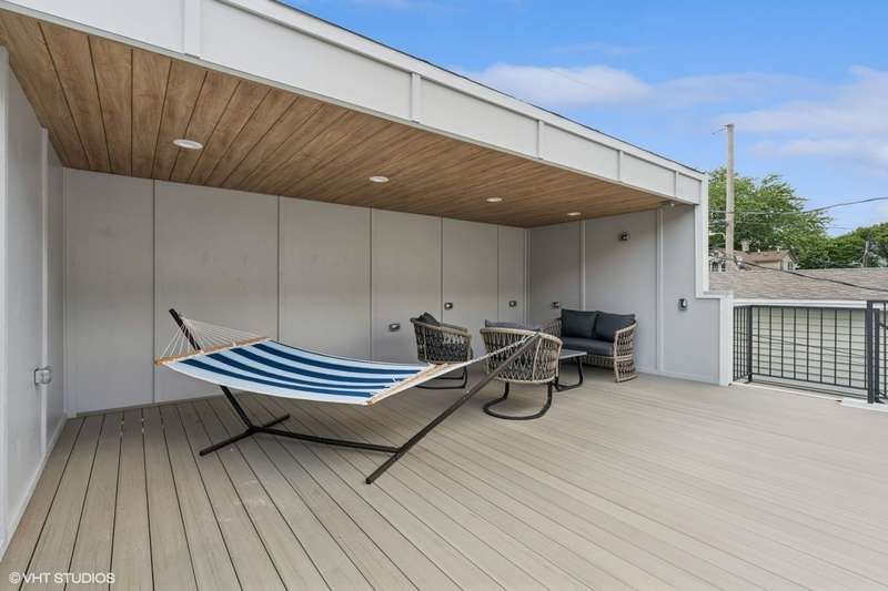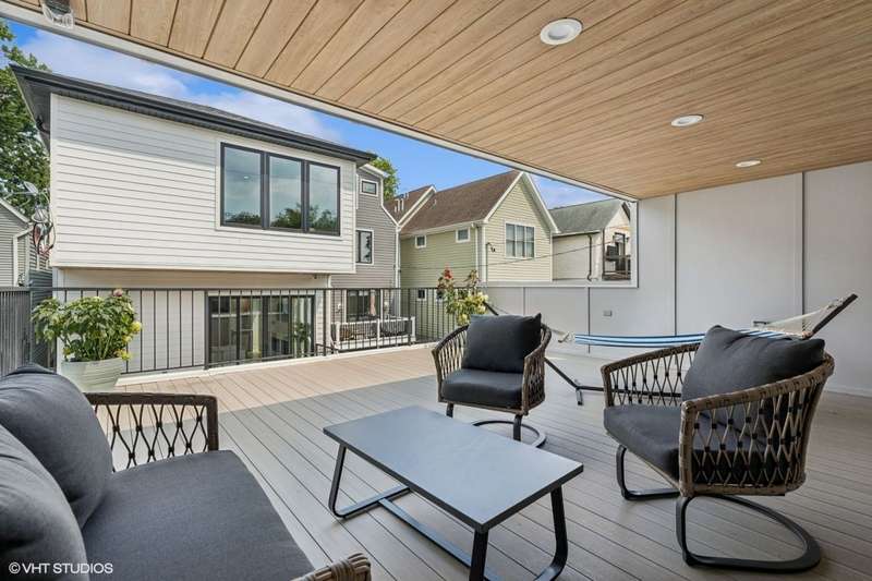 Newly completed West Lakeview 5-bedroom, 4.2-bath single-family home with elegant architectural flow, natural materials, and curated finishes. The oversized entry and formal sitting area features coffered ceilings, powder room with made-to-order Calacatta Viola Antique Marble Sink. The unforgettable chef's kitchen features a 16' island with Taj Mahal marble, paneled Thermador appliance suite, Emtek pulls, custom cabinetry, walk-in pantry, and fluted accents. Living room expands to the custom made steel deck and composite decking, and garage-top deck with enclosed pergola. The primary includes dual walk-in closets, spa-quality en-suite bath with Aqua Quartzite dual sinks, Victoria+Albert soaking tub, spa shower, radiant heated floors and artisan tile selections including a Verde Tia marble niche and Baltic sandstone. The second level has two additional bedrooms, a Jack-and-Jill bath with Aqua quartzite sinks, natural stone finishes, and radiant heated floors. The utility room and laundry closet with storage complete the level. The lower level offers an expansive family room, 10' high ceilings, wet bar, Zephyr beverage cooler, finished with a leathered Onyx quartzite marble counter. Level also includes powder room, two bedrooms, each with radiant heated floors in en-suite baths and custom closets, and full-size laundry room. Additional features include a 400-amp electrical service (garage subpanel, EV ready), main and lower level pre-wired for 5.2 surround sound, 2 electric fireplaces, custom closets throughout, oversized windows, 4K full parameter camera system, and smart home integrations. Located directly across from the Hamlin Park clubhouse, pool, tennis courts, and dog park. Enjoy easy access to Costco, Whole Foods, Target, Belmont CTA, Roscoe Village shops and restaurants, and an abundance of green space.