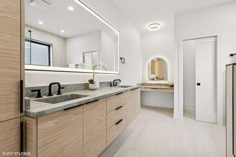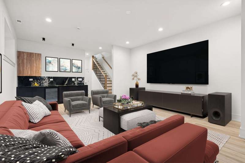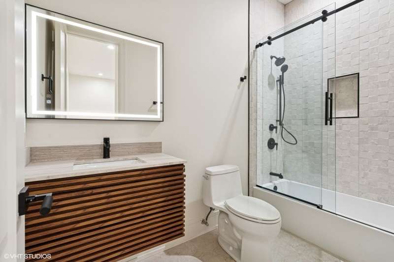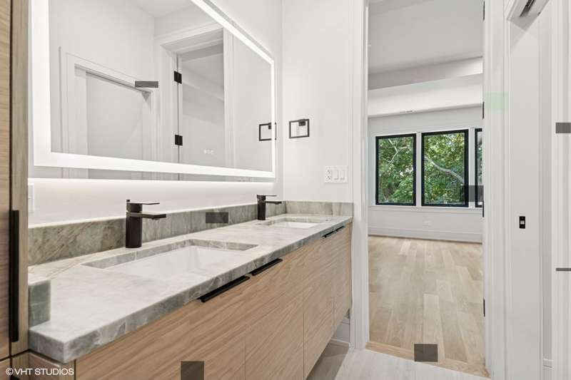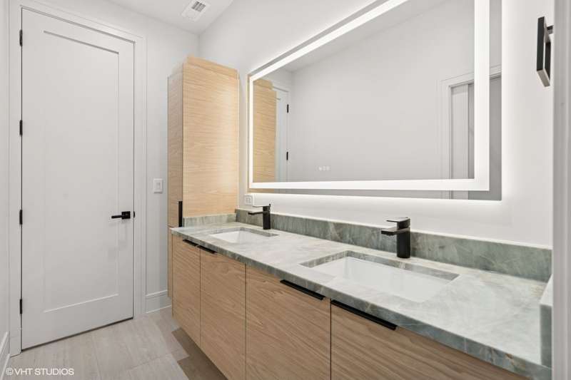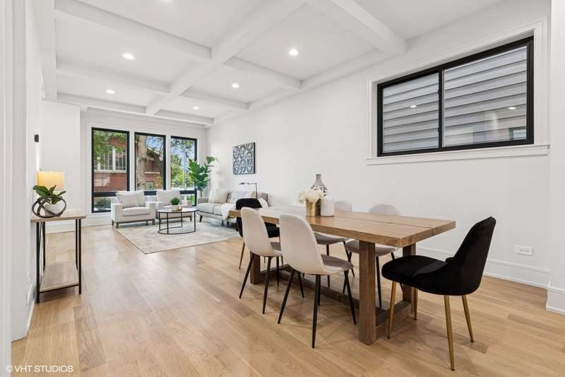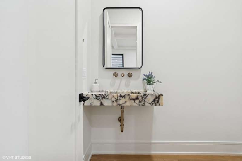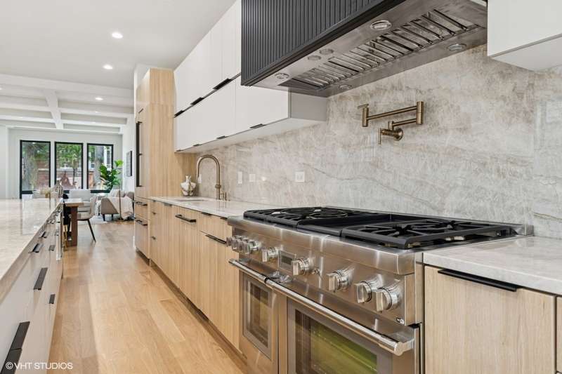 Newly completed West Lakeview 5-bedroom, 4.2-bath single-family home with elegant architectural flow, natural materials, and curated finishes. The oversized entry and formal sitting area features coffered ceilings, powder room with made-to-order Calacatta Viola Antique Marble Sink. The unforgettable chef's kitchen features a 16' island with Taj Mahal marble, paneled Thermador appliance suite, Emtek pulls, custom cabinetry, walk-in pantry, and fluted accents. Living room expands to the custom made steel deck and composite decking, and garage-top deck with enclosed pergola. The primary includes dual walk-in closets, spa-quality en-suite bath with Aqua Quartzite dual sinks, Victoria+Albert soaking tub, spa shower, radiant heated floors and artisan tile selections including a Verde Tia marble niche and Baltic sandstone. The second level has two additional bedrooms, a Jack-and-Jill bath with Aqua quartzite sinks, natural stone finishes, and radiant heated floors. The utility room and laundry closet with storage complete the level. The lower level offers an expansive family room, 10' high ceilings, wet bar, Zephyr beverage cooler, finished with a leathered Onyx quartzite marble counter. Level also includes powder room, two bedrooms, each with radiant heated floors in en-suite baths and custom closets, and full-size laundry room. Additional features include a 400-amp electrical service (garage subpanel, EV ready), main and lower level pre-wired for 5.2 surround sound, 2 electric fireplaces, custom closets throughout, oversized windows, 4K full parameter camera system, and smart home integrations. Located directly across from the Hamlin Park clubhouse, pool, tennis courts, and dog park. Enjoy easy access to Costco, Whole Foods, Target, Belmont CTA, Roscoe Village shops and restaurants, and an abundance of green space.