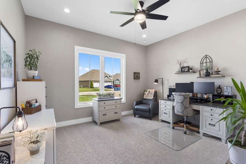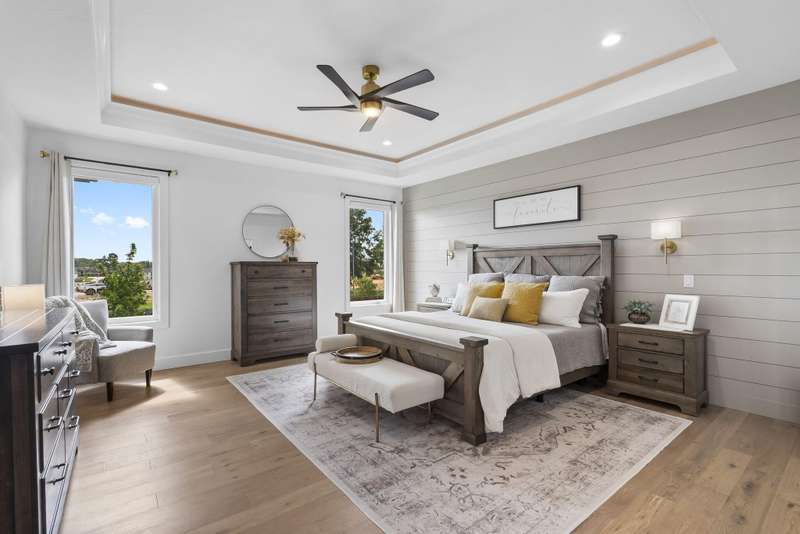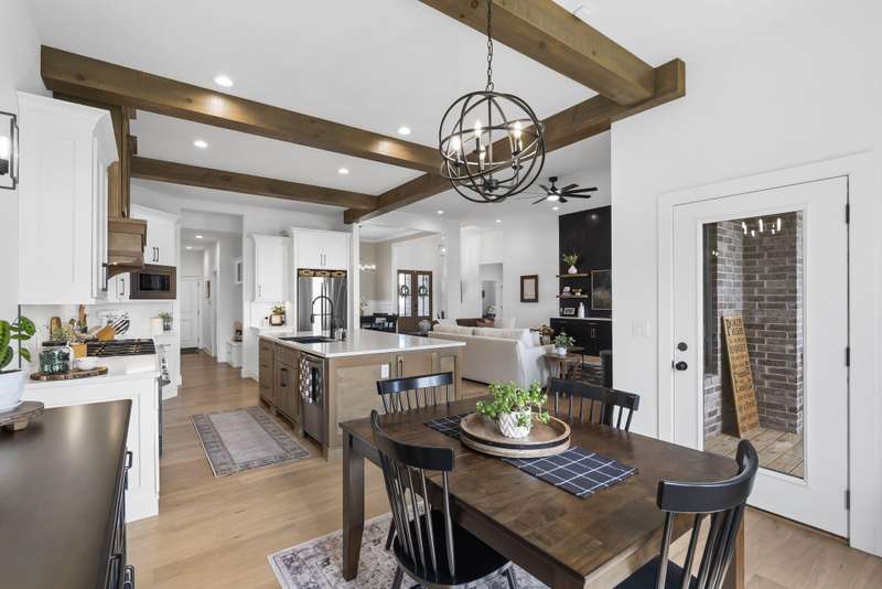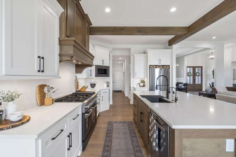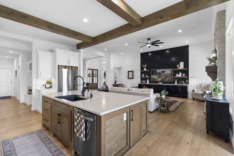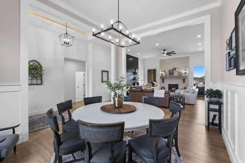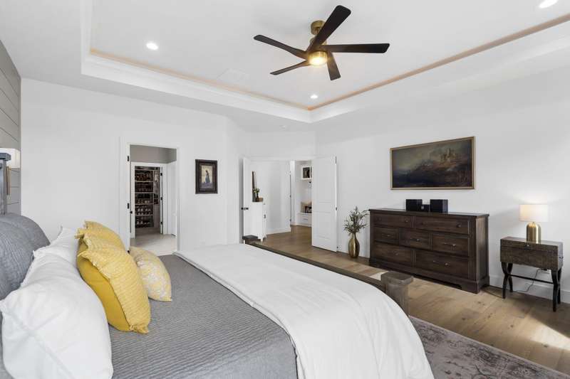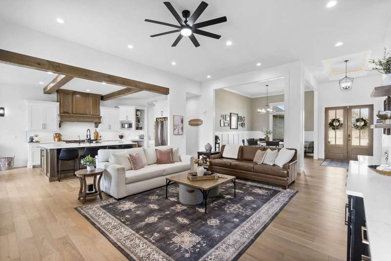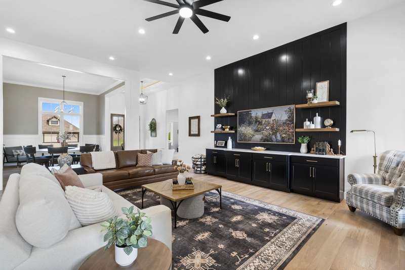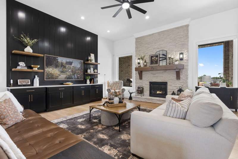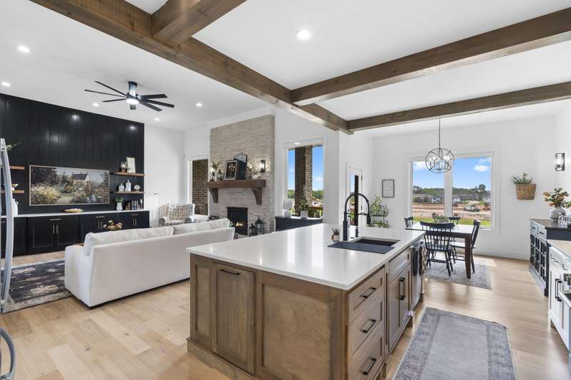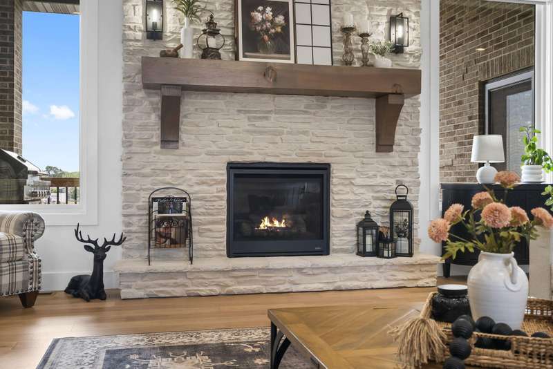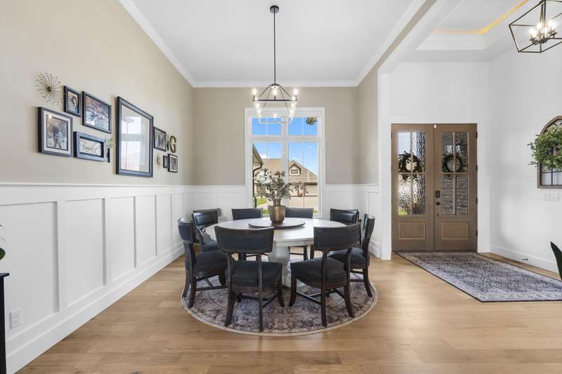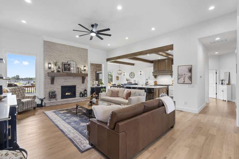 This stunning single-level home is sure to impress from the moment you arrive. A grand double-door entry opens into a spacious great room with soaring 12-foot ceilings, a formal dining area, a beautiful stone fireplace, and a custom feature wall with built-in storage, bringing both style and function to the living area. Beautiful hardwood flooring and fresh paint throughout enhance the open, airy feel.The kitchen is a showstopper--featuring quartz countertops, custom cabinetry, a tile backsplash, vent hood, built-in microwave, a newly upgraded 48in professional double oven gas range with 8 burners, and a pantry for extra storage. A large island offers the perfect space for gathering and entertaining.A split-bedroom layout offers privacy, with 3 bedrooms on one side and a luxurious primary suite on the other. The primary suite features a double-door entry, tray ceilings, and abundant natural light. The ensuite bath includes a double vanity, a brand-new, upgraded tiled shower, a freestanding soaker tub, and an impressive walk-in closet with built-ins.Additional upgrades include new carpet in all bedrooms, a whole house water purification system, reverse osmosis system in the kitchen, and the laundry room with a sink and added storage cabinets. Outside, enjoy a covered back deck and fully- fenced backyard. You'll also have access to fantastic subdivision amenities including: 2 pools, a clubhouse, covered pavilions, basketball and pickleball courts, a playground, and fishing ponds.