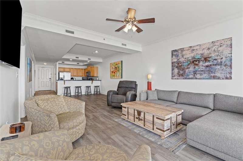 Welcome to the top tier, this is a lovely non-rental 7th Floor unit of Holiday Isle. Turnkey Gulf-Front 2BR/2BA Condo with Breathtaking Sunrise & Sunset Views! Come enjoy your slice of paradise on Dauphin Island. This fully furnished 2-bedroom, 2-bath Gulf-front condo on the TOP floor offers stunning, unobstructed views of both sunrise and sunset from a large, covered balcony perfect for sipping morning coffee or enjoying an evening drink as the sun dips below the horizon. This pristine unit is truly turnkey and ready for a new owner. Features include new wood look tile in living room and bedrooms have new carpet in 2023. New dishwasher, microwave, washer/dryer in 2025, water heater (2022, two new high end mounted TVs in 2024, new sofa 2024, and REMOTE room darkening shades with a warranty. Enjoy a host of resort-style amenities like two sparkling pools, sauna and steam room, fitness center, tennis/pickleball court, owners lounge and ping pong table, two dog park areas. Step outside and the sugar-white sands are just steps away ideal for sunbathing, beach combing, or simply relaxing by the water. Right across the street, enjoy popular local spots for pizza and wings, BBQ, ice cream shop, boutiques, and souvenir stores. Built for durability and storm protection, the complex features full concrete frame with stucco exterior, steel studs and EFCO, impact-rated glass doors/windows, three-story gated parking deck with poured concrete, storm surge flow-through design below living areas. Don't miss this rare opportunity to own a low-maintenance beachfront property on Dauphin Island! **Listing broker makes no representation regarding the accuracy of listing details. Buyer or buyer's agent should verify all information, including HOA, zoning, local regulations, and deed restrictions.