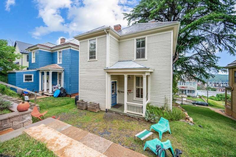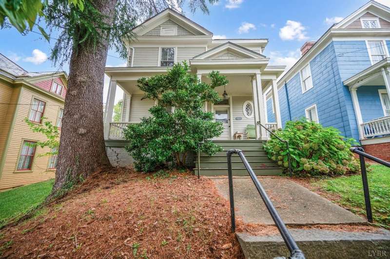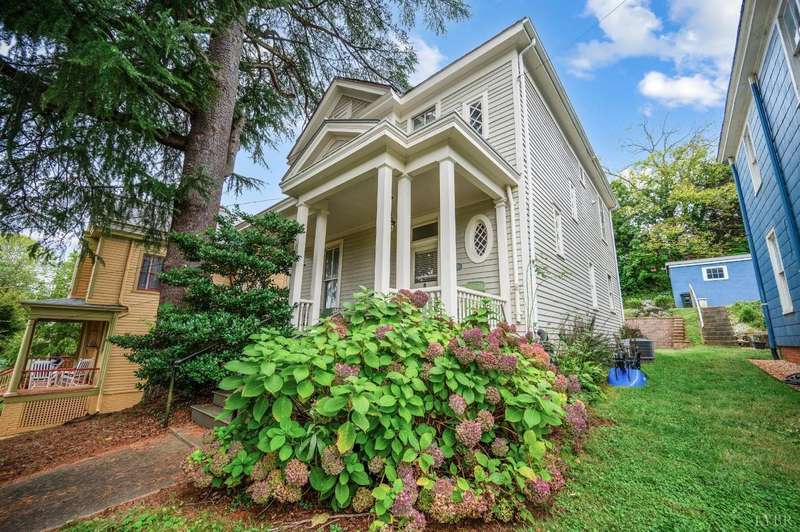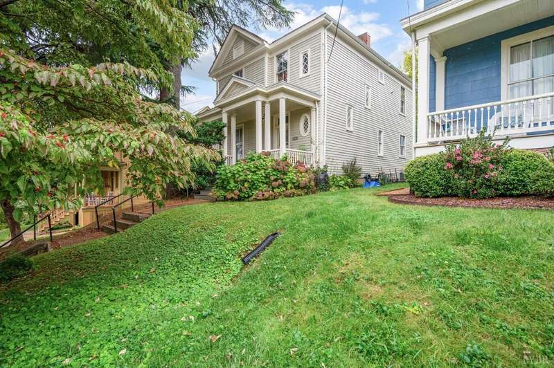 Perched atop Federal Hill, this beautiful Victorian home provides views of Downtown while touting privacy due to being far above the Street. Don't let the striking stone staircase alarm you, the owners have thoughtfully installed a lovely retaining wall and off street parking behind the home (accessed through the alley) installed by local stone masons Shrader Stone. The updated kitchen welcomes you with tall ceilings and cabinets, quartz counters and stainless steel appliances. The home was thoughtfully designed with a warm neutral interior welcoming all decor styles. The living Room and dining room are spacious and feature original mantles, moldings and large light filled windows. Upstairs you will find 3 Bedrooms and the sweetest office perfect for working from home. The updated bathroom has marble tile flooring and large vanity. Don't miss the upstairs laundry and walk up attic for storage! This home has all the updates you're looking for without sacrificing any charm.