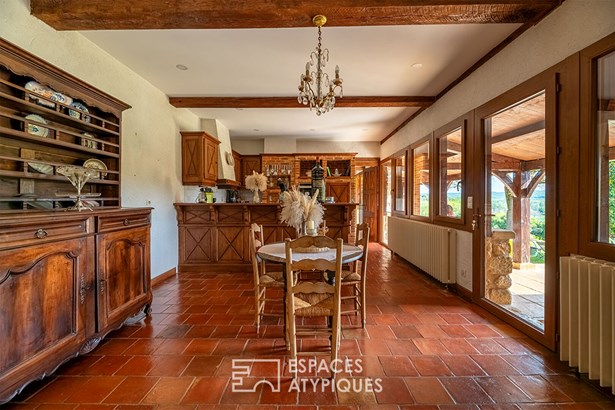 This floor provides access to a covered terrace converted into an outdoor living room with breathtaking views of the valley.