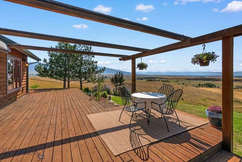 Breathtaking views of Gallatin Valley from every direction on this private 14 acres! This property is located slightly above the valley on a private road surrounded by large agricultural parcels, which offers amazing views, privacy, and tranquility. The location is just outside of Bozeman with easy access to town, an abundance of hiking trails, skiing, fishing, hunting, and rafting. The wildlife is abundant - deer, elk, antelope, moose, foxes, owls, cranes, and much much more! The property has been exceptionally maintained. The main house boast three bedrooms and three bathrooms, an open floor plan on the main level with ceiling to floor windows in the living area, creating an abundance of light and southern exposure with passive solar heating in the winter. There is a full finished basement with two bedrooms with egress windows and a full bathroom, lots of additional living space, and an open utility room. The house has radiant heat throughout, a wood stove in the living room, and three additional split units for heating and cooling. There is a full guest quarters located above the adjacent building which also includes a pass through covered area for equipment and tools, and a lower living area with radiant heating in the floor. This space can be finished into a living space, converted back into a workshop, or a bonus room. Additionally the property has two wells, two buried 1000 gal propane tanks, a fenced in garden area, a beautiful pond that is lined and aerated by a windmill, a deck that is south facing and wraps around to the outside of the master suite, in-ground sprinklers, and an attached full sized two car garage. This is a must see in person property!