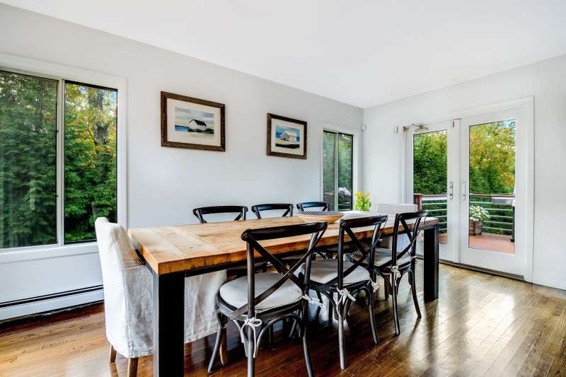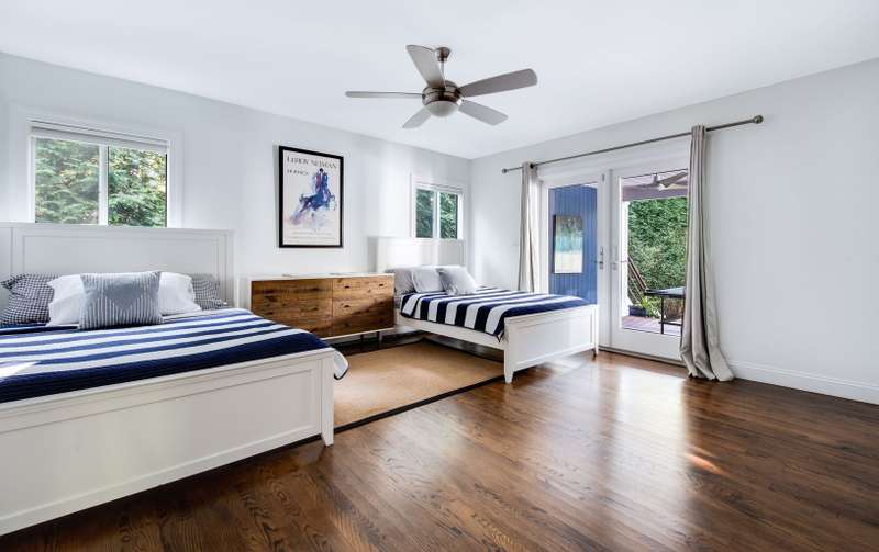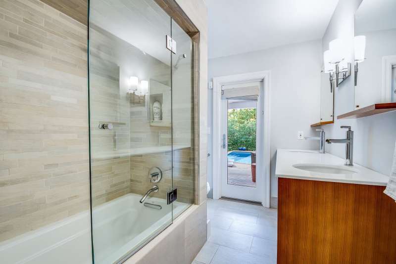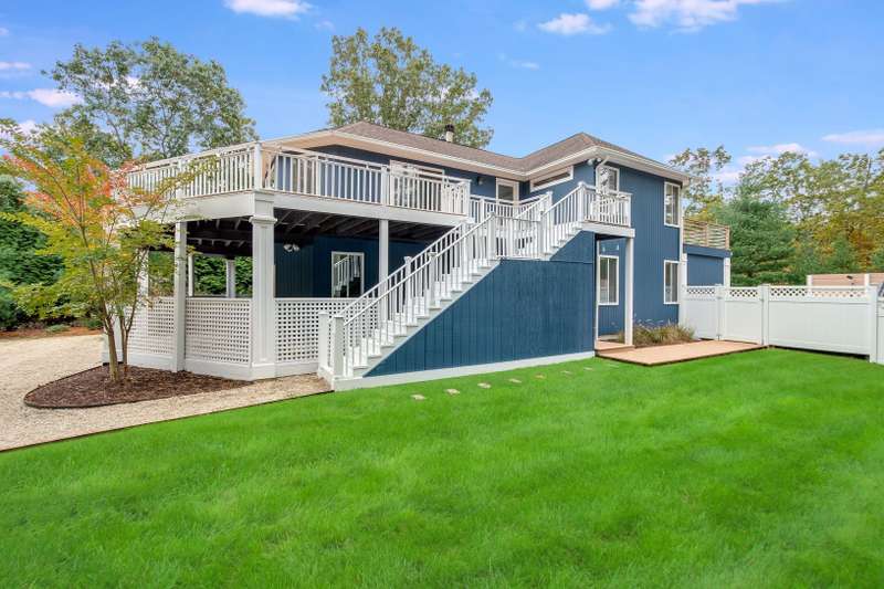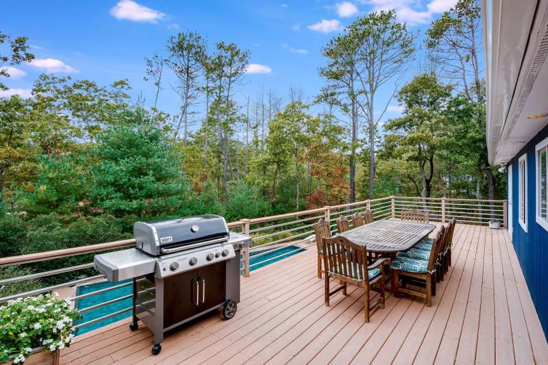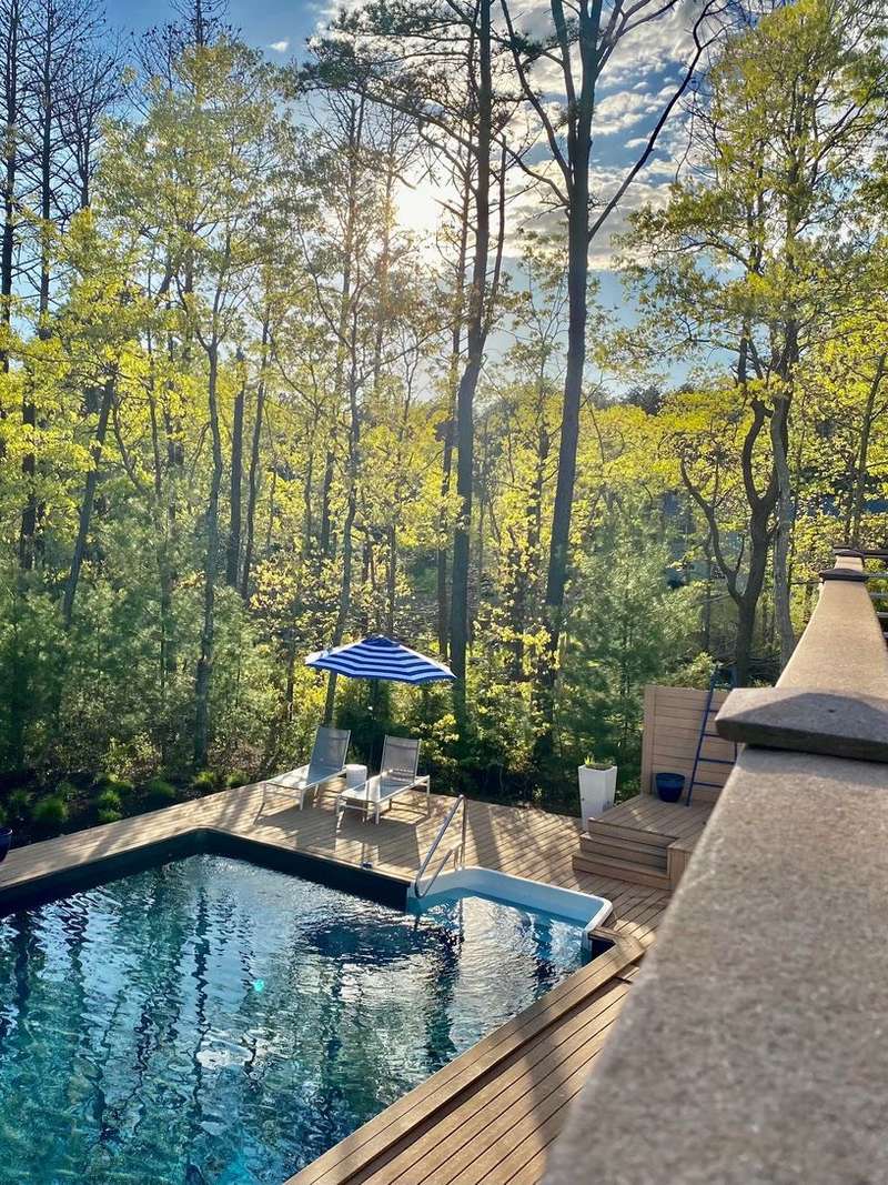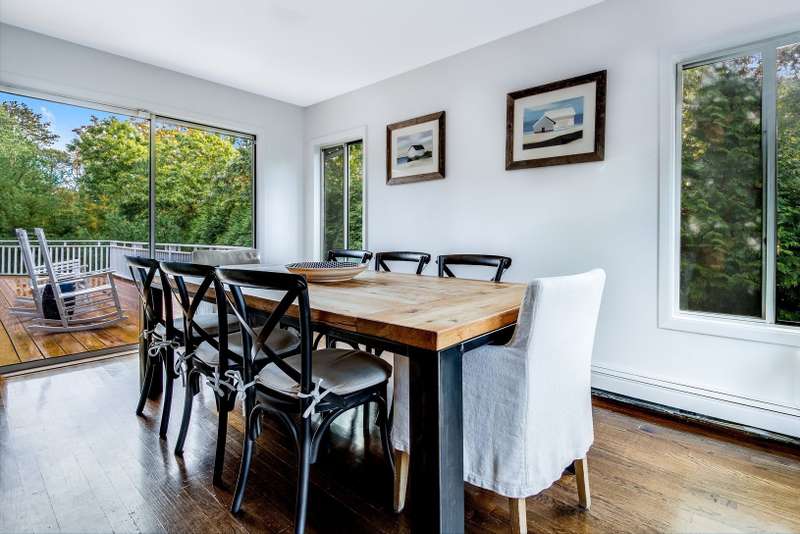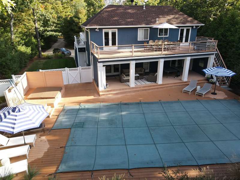 Rental Reg#:24-221. Renovated oasis in between Sag Harbor Village and East Hampton Village...natural light pouring in from every angle. The home is designed for outdoor/indoor entertainment with wrap around decks, outdoor dining spaces with views of nature, and also overlooking the heated pool and large hot tub, complete with outdoor shower. The main living level features a generous size master bedroom w/ ensuite bathroom, and balcony. The eat in kitchen, with plenty of dining space, leads to the wrap around deck and outdoor dining. Enter the spacious open living room with a wood burning fireplace and great room for entertainment. There are 2 private and very well-appointed bedrooms on the lower level and they both lead to the pool. Relax in the open-air outdoor living room. Enter into the property down a beautiful stone driveway. Bay beaches minutes away and bike trails across the street. This home is a wonderful place to spend your summer days. Listing ID: 888034