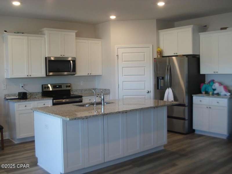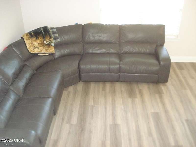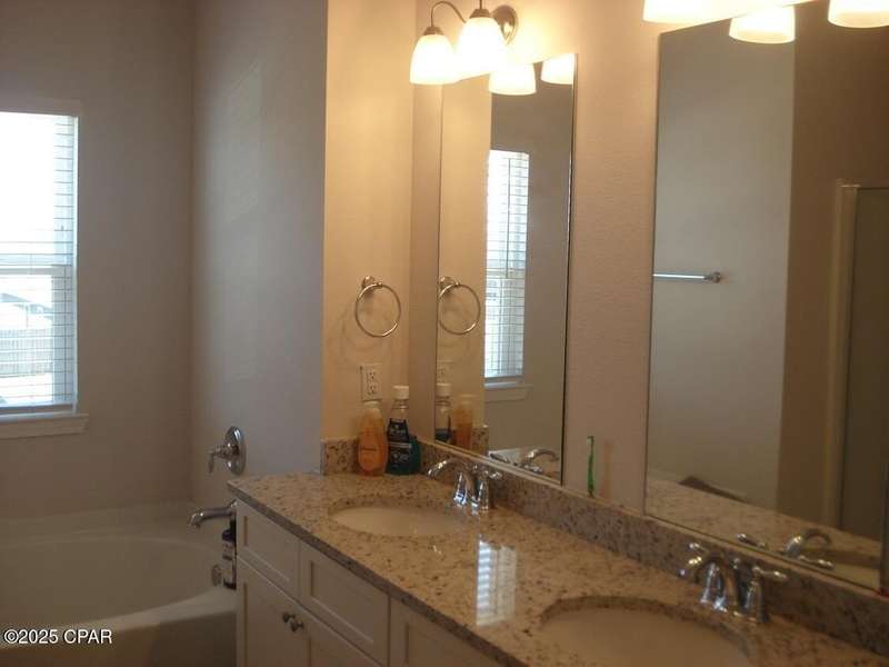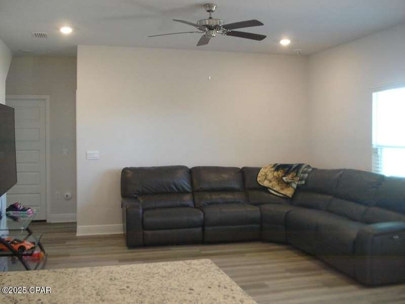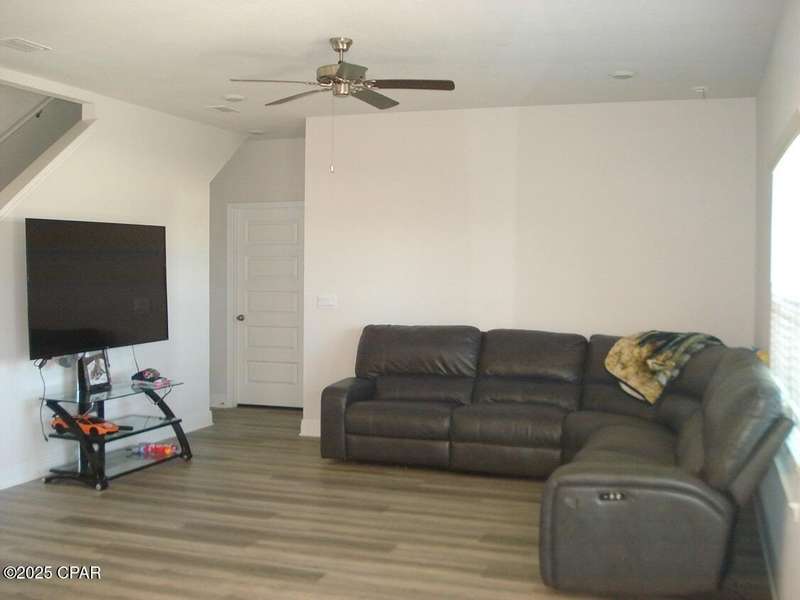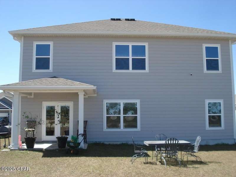 The home (The Carol) is a 2 story detached home that is in the highly desirable community of Titus Park. Located on the north east side of Panama City, Titus Park is a short drive to downtown Panama City, the Gulf of Mexico with sugar sand beaches, Tyndall Air Force Base, shopping, dining, and more! The home has engineered vinyl plank floors with a flex room and a bright and open floor plan, connecting the kitchen (granite countertops, white cabinetry with brushed nickel knobs, and stainless steel Whirlpool appliances which includes the following: stove, dishwasher, and microwave) and dining area to the living room. The backyard backs up to a common area. Home has a first floor bedroom and full bath and additional bedrooms rooms on the second floor. All info taken from appraiser site and all sizes approx., please verify if important.