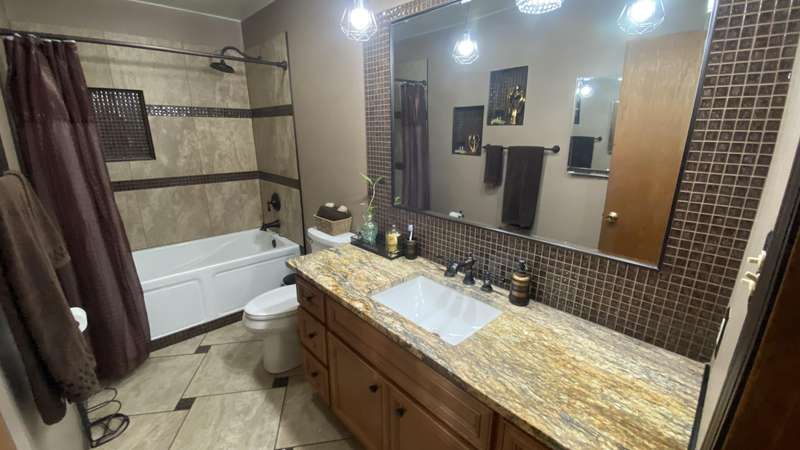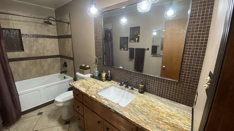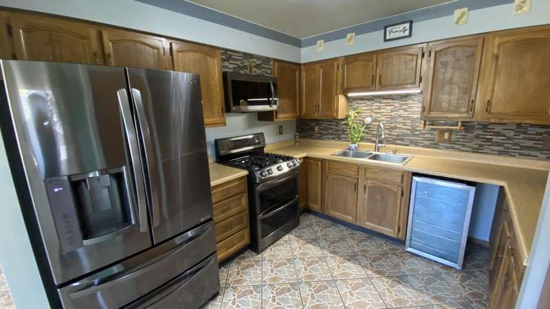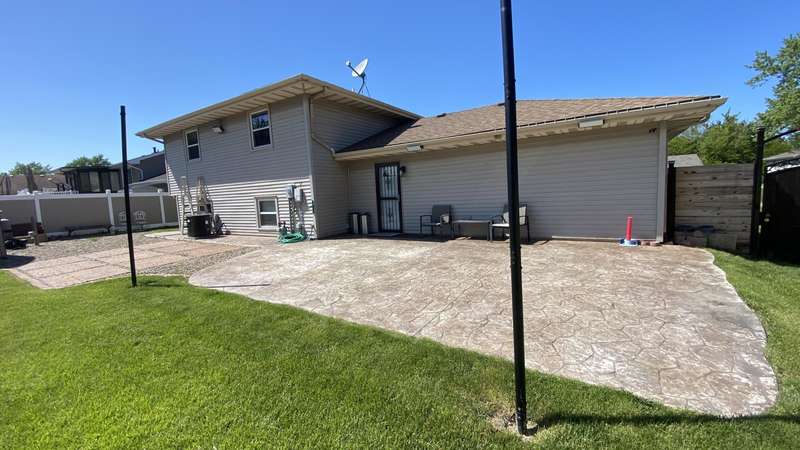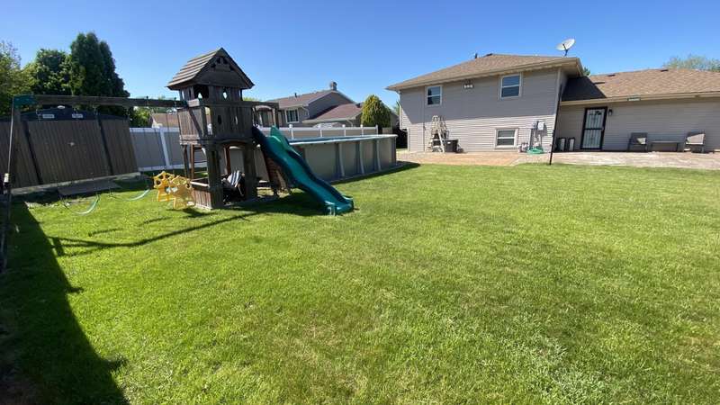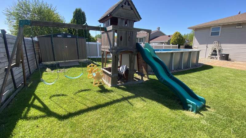 Motivated Sellers! Picture yourself living the resort lifestyle in this Well maintained and updated 4 bedroom and 2 bath Bi-Level home with a gated & fenced privacy big back yard with stamped patio, big oval pool, personal firepit area, and kids play gym. Enter through the custom wood front door the roomy tiled foyer up the wood staircase into the spacious living room which opens to the large kitchen with plenty of cabinets, pantry, tile flooring, gorgeous glass backsplash and walkout to the upper balcony great for grilling. Continuing on the main level is the updated hall bath with custom tile flooring, shower with tile niches, a big vanity with granite top & undermount bowl, then onto primary bedroom and 2nd bedroom each with laminate floors, fans, and big closets. The lower level Features an Open great room with a built in bar with granite top, a 3/4 bath with custom tile shower and upscale bath tile niche accents, Two more generous bedroom(one with a chalk paint wall), Big laundry room with shelves, cabinets and laundry tub! The large garage includes a work shop area and fridge! Many new updates inside and outside of this home. Front Door 2022, rear door 2023, Stamped Concrete Patio 2021, Pool 2021,Roof 2016, HVAC 2014, Windows 2014. The Outside is your own personal oasis with a beautiful privacy fenced backyard with oval pool, fire pit area with wood storage, shed, garden, custom playset & plenty of room to play and enjoy the outdoors!