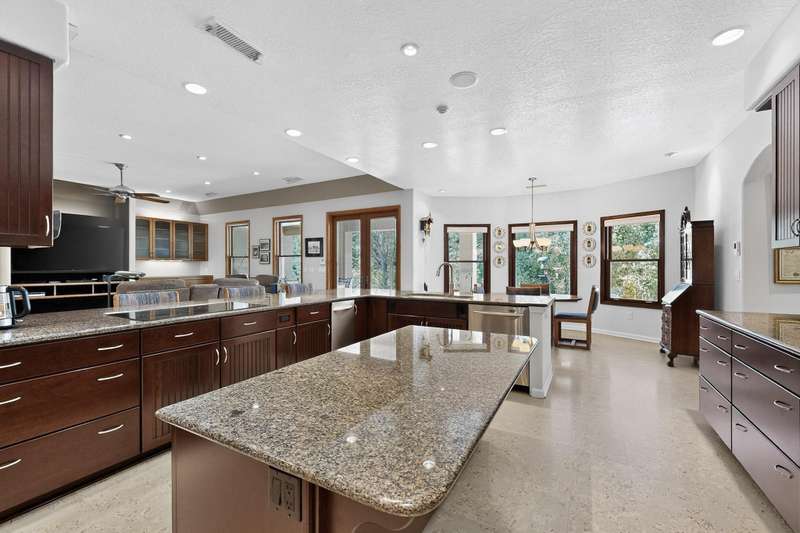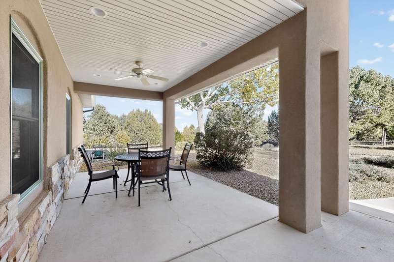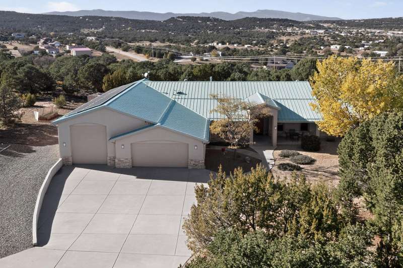 Rare opportunity in Sandia Mountain Ranch for this one-owner, single-level custom beauty on 2 acres, just minutes from Albuquerque. 3634 SF, 3BR + Office, 3 baths and a 2204 finished and insulated garage, workshop and 60' X 17.75' RV garage. The owner spared no expense when building this home - it has so many incredible features. Large cook's kitchen with Kitchen Aid appliances, convection ovens, custom cabinetry with full-extension pull-out drawers, warming drawer, 2 pantries, 3 cm thick granite countertops and a large center island. 3/4'' solid red oak floors in main living areas, dining, halls and bedrooms, natural cork in the kitchen and ceramic tile in wet areas and entry. No carpet in home.