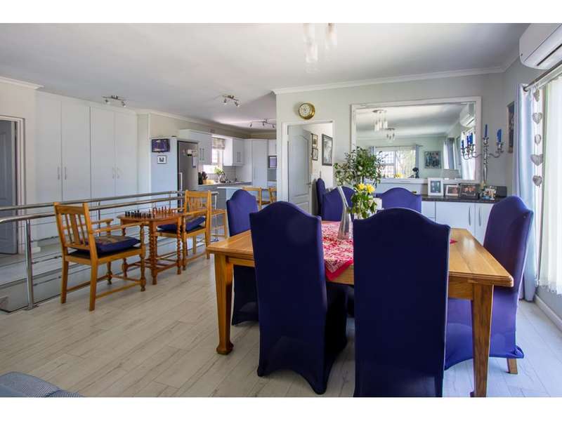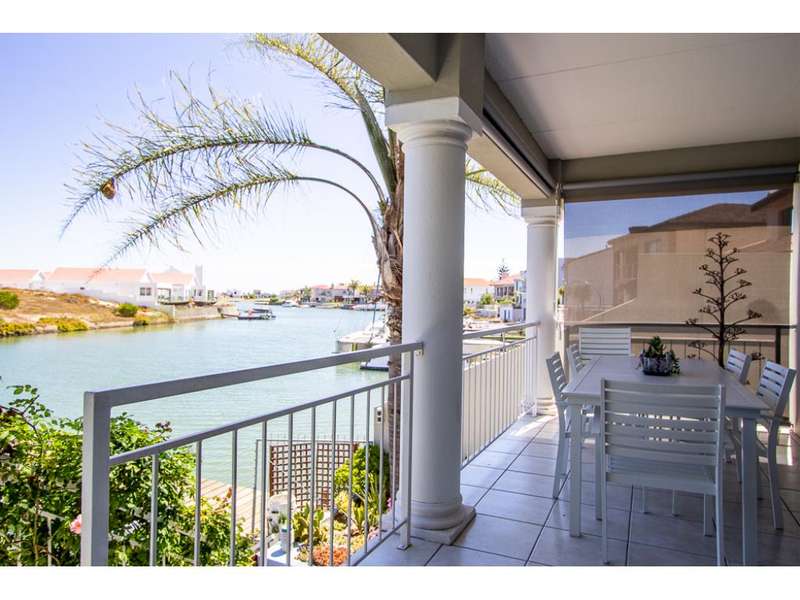 When you are looking for a Waterfont property and a Jetty in front of your door for your boat, and you do not want to spend to much time taking care of the garden and surrounds, this house is for you! You will fall in love with the view, the lovely living space, the extra study, which can serve as a fourth bedroom if you want. The house has a covered stoep/balcony on both levels which extend the living areas. There is an inside braai and another one on the balcony. The whole house was upgraded with new floor tiles while the upstairs living area, and main bedroom has laminated floors. The main bedroom has a full en-suite bathroom, lots of cupboard space and and sliding door to the balcony. The kitchen has engineered-stone tops a double eye-level oven, and there is separate scullery/laundry. Also upstairs is an extra shower bathroom. Extras include CCTV cameras and alarm system. Solar system and invertor for convenience and lower your energy costs. Fully walled property with automated gate. Air conditioner in living area upstairs. Extra loo in garage. Private jetty (fees +/- R700 / month)