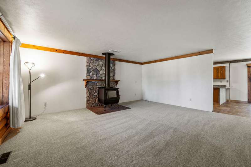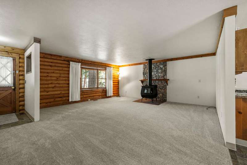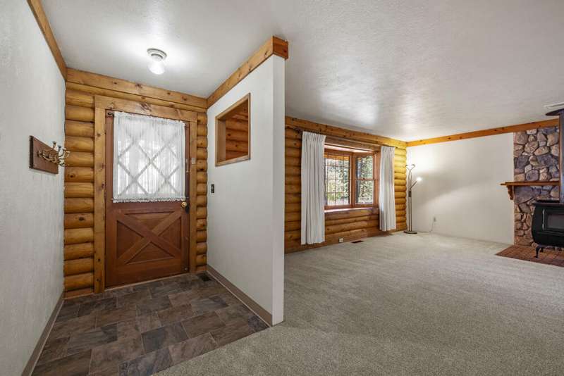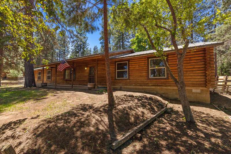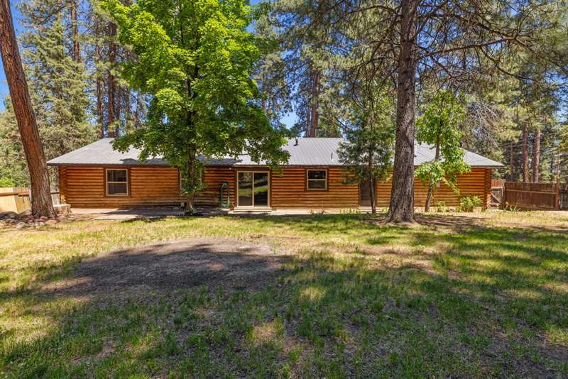 Welcome to your dream log home in Keno! This recently remodeled ranch-style gem offers the perfect blend of rustic charm and modern comfort. Nestled on a nicely treed lot, the fully fenced and landscaped yard provides privacy and a serene outdoor space. The primary bedroom features an attached newly remodeled bathroom for your convenience. Enjoy relaxing evenings in the backyard with a shed that includes a hot tub, perfect for unwinding. The spacious 2-car garage offers an attached pantry for storage needs. Inside, you'll find newer kitchen cabinets, brand new flooring & paint throughout plus new vinyl windows and sliding glass door that enhance energy efficiency. A newer gas furnace and wood stove ensures cozy winters. New ceiling fans and remodeled bathrooms. Metal roof. All appliances included -Move in Ready! Don't miss out on this updated home that captures the essence of country living with contemporary upgrades.