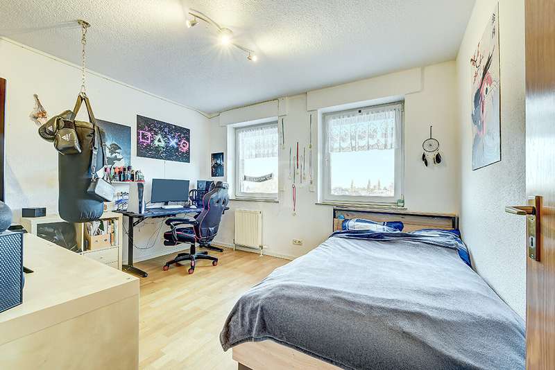 This well-kept maisonette apartment is located in a charming condominium community in a central and popular residential area in Duisburg-Rheinhausen. This condominium has a living area of 117 m² and therefore offers plenty of space. The property has a total of 4 rooms, including 2 bedrooms and 1 bathroom, as well as a guest WC. The living room area is separated by a lightweight partition wall. An open-plan living/dining room could also be created here with little effort if fewer bedrooms are required. The living area extends over the 3rd floor and consists of a generous, light-flooded living room, a bright, spacious kitchen and a hallway, as well as a practical storage room. Particularly noteworthy is the access to the balcony from the living room and the bedroom, from where you have a wonderful view over the rooftops of Rheinhausen. A further bedroom or children's room is also located on this floor. Adjacent to this is the light gray tiled guest WC with WC and washbasin. Right next to it is a spacious bathroom with shower and bathtub, washbasin and WC, also tiled in light gray. Both bathrooms are equipped with a fan for optimum ventilation. In the upper area of this maisonette, there is a beautiful gallery. A beautifully designed spiral staircase leads through the living room to another large room, which can also be used as a home office, additional living room, reading room or fitness area. A wonderful open space to create an even more individual living experience. There is also a large cellar room and a communal laundry and drying room. Attention car lovers! The two garages with separate power connections provide convenient parking. It is extremely rare to be lucky enough to have two garages assigned to you!!! Furthermore, visitor parking spaces can be used and a small playground with a sandpit is available to residents. Overall, this property offers an ideal combination of size, location and features. It is suitable for both families and working couples who value a central and attractive residential area with a high standard. Don't hesitate and arrange a viewing today. We look forward to seeing you!