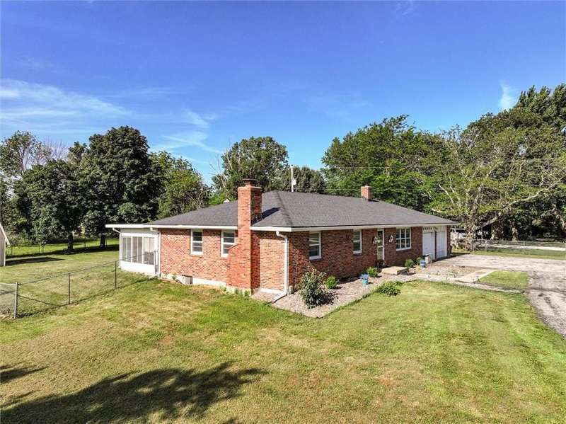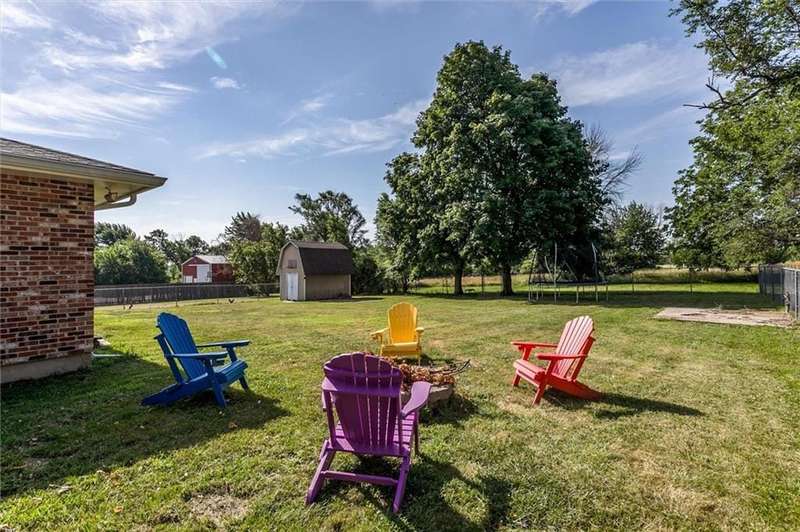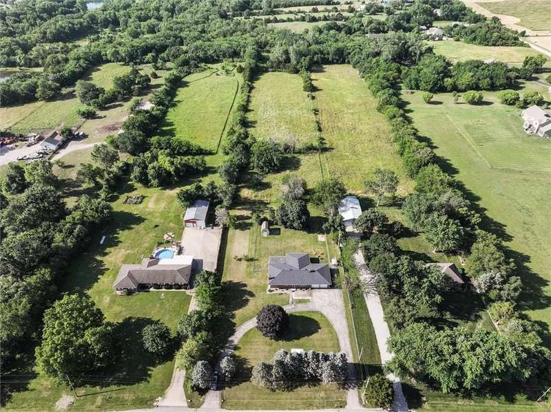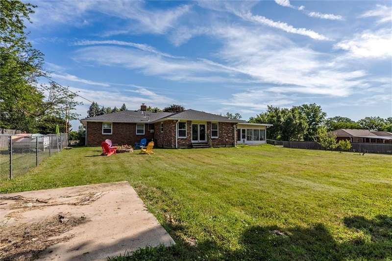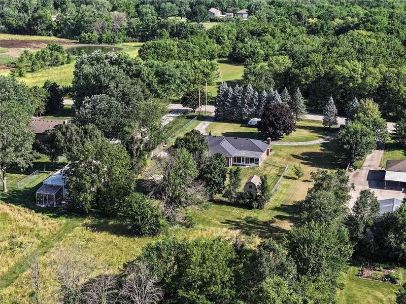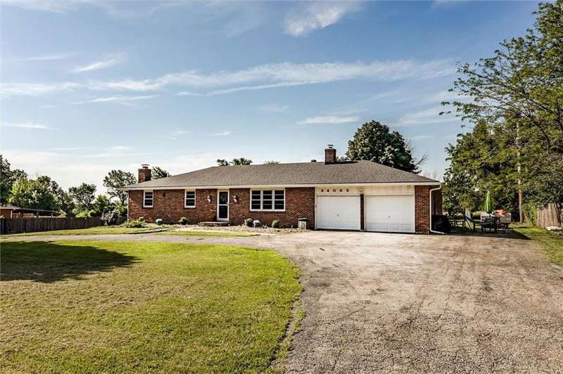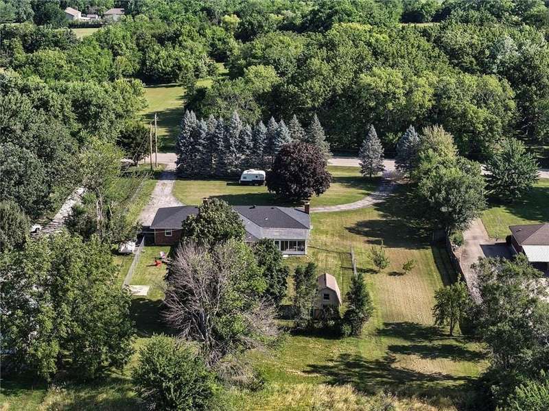 All brick true ranch with 5 + acres, full of updates and charm. One level living with main floor bedrooms and a non-conforming 4th bedroom/office in the finished basement, as well as a 3rd living room/rec room. Washer/dryer hookups on each level. Two inviting living areas on main floor and an open floor plan make for great indoor/outdoor entertaining space. Beautifully updated kitchen with plenty of granite countertops, stainless steel appliances, dual pantries, under cabinet lighting. Two full and 2 half baths. Newer roof, soffits, 6 inch gutters, hot water heater. Water softener, radon system, attic fan, sump pump. Shop sink and workshop space. Lovely screened-in porch overlooking the backyard sunsets! Storage shed outside and plenty of storage space and built-in shelves in basement and oversized garage. Fully fenced portion of the back yard opens to more acreage behind the home! Convenient circle drive with ample parking and privacy provided year round by evergreen trees. The paved road to the driveway ensures easy accessibility. Ideal country location and just a short drive to amenities, major highways, and award winning DeSoto Schools! Located just outside the city limits on a rural part of 135th Street. Welcome to your next home! Seller is offering a $5k carpet allowance to replace the bedrooms and living room areas.