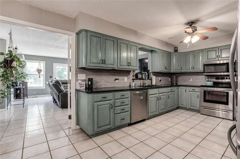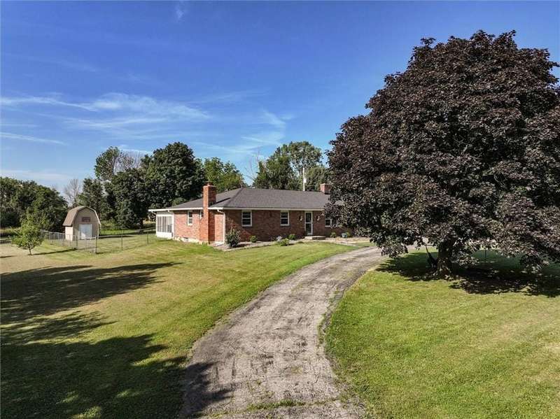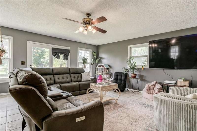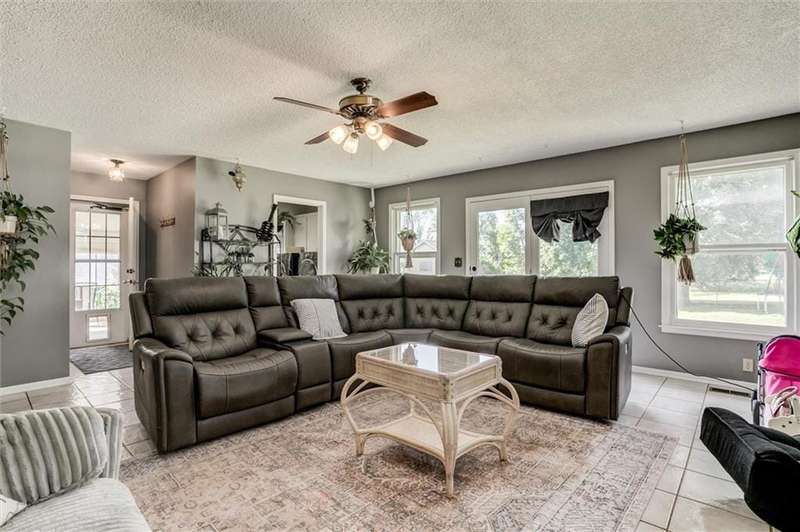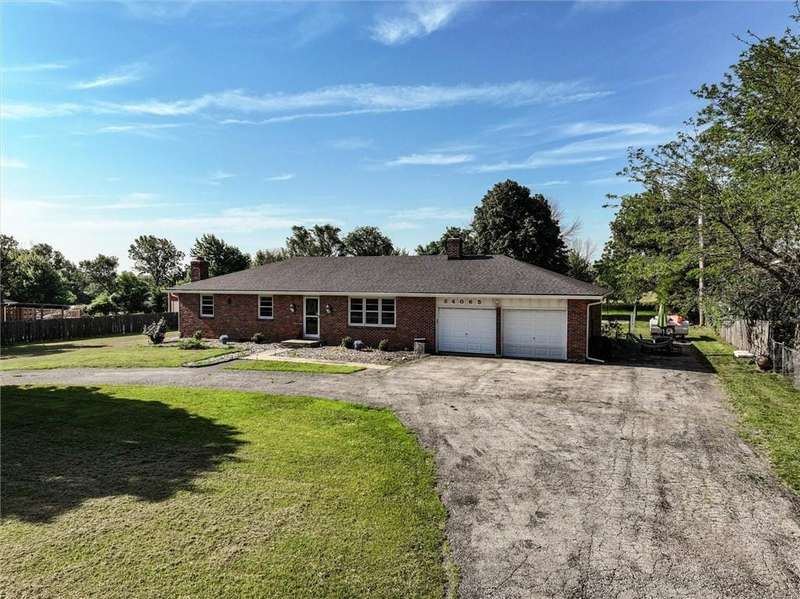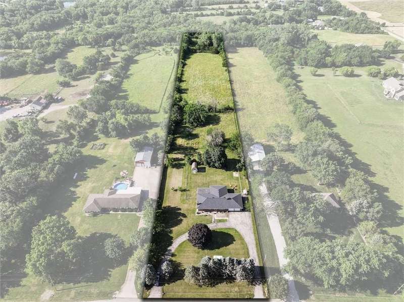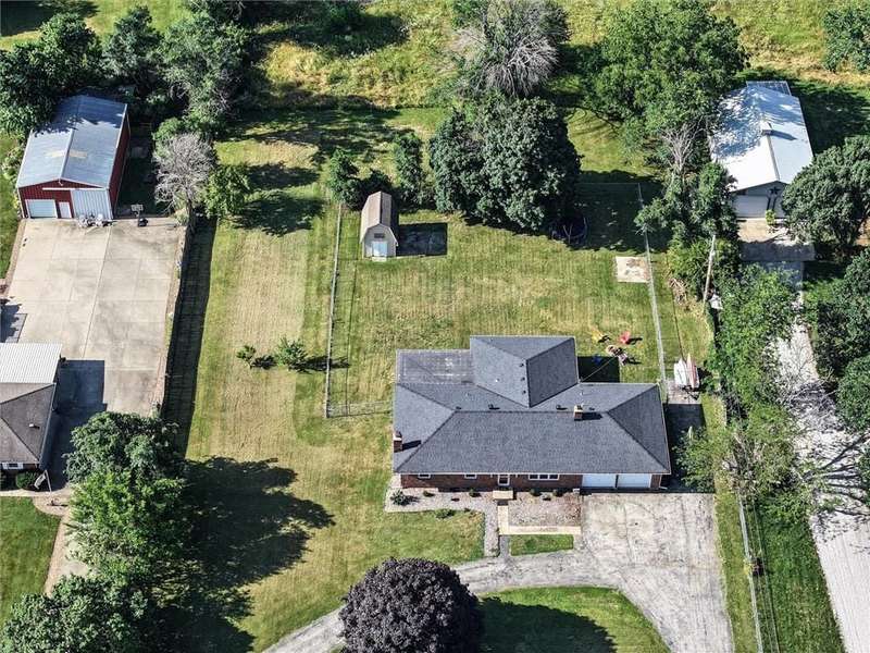 All brick true ranch with 5 + acres, full of updates and charm. One level living with main floor bedrooms and a non-conforming 4th bedroom/office in the finished basement, as well as a 3rd living room/rec room. Washer/dryer hookups on each level. Two inviting living areas on main floor and an open floor plan make for great indoor/outdoor entertaining space. Beautifully updated kitchen with plenty of granite countertops, stainless steel appliances, dual pantries, under cabinet lighting. Two full and 2 half baths. Newer roof, soffits, 6 inch gutters, hot water heater. Water softener, radon system, attic fan, sump pump. Shop sink and workshop space. Lovely screened-in porch overlooking the backyard sunsets! Storage shed outside and plenty of storage space and built-in shelves in basement and oversized garage. Fully fenced portion of the back yard opens to more acreage behind the home! Convenient circle drive with ample parking and privacy provided year round by evergreen trees. The paved road to the driveway ensures easy accessibility. Ideal country location and just a short drive to amenities, major highways, and award winning DeSoto Schools! Located just outside the city limits on a rural part of 135th Street. Welcome to your next home! Seller is offering a $5k carpet allowance to replace the bedrooms and living room areas.
