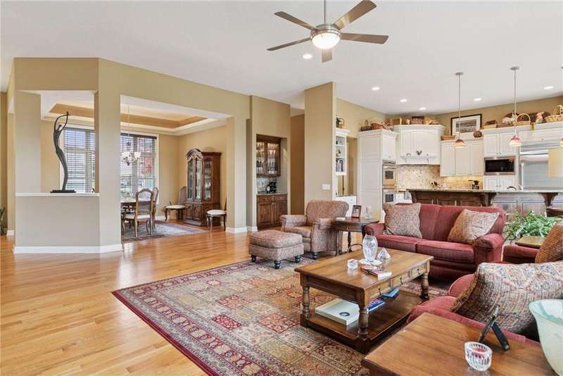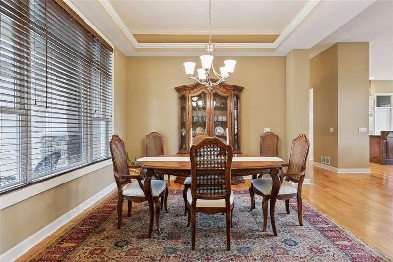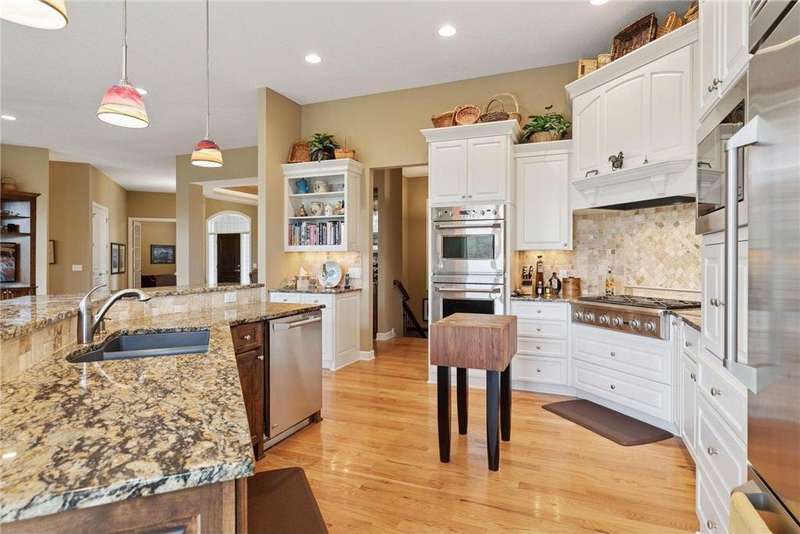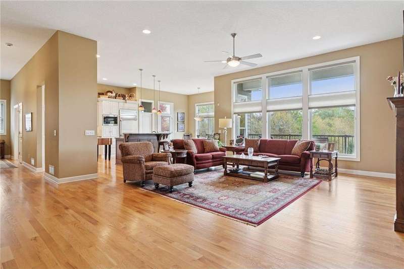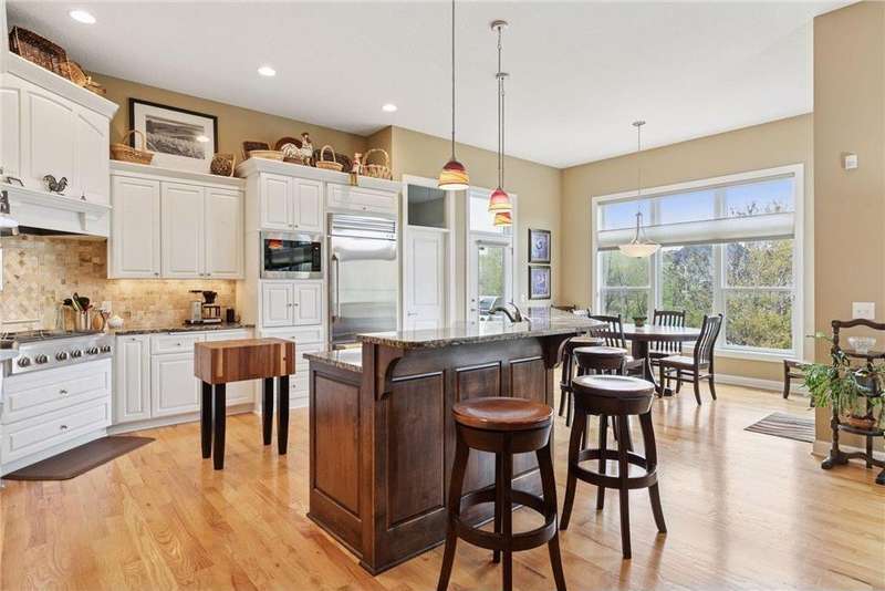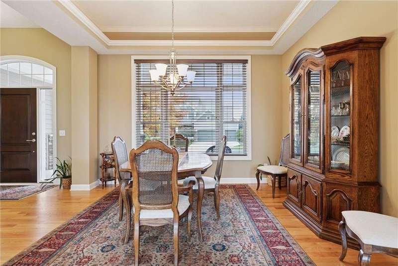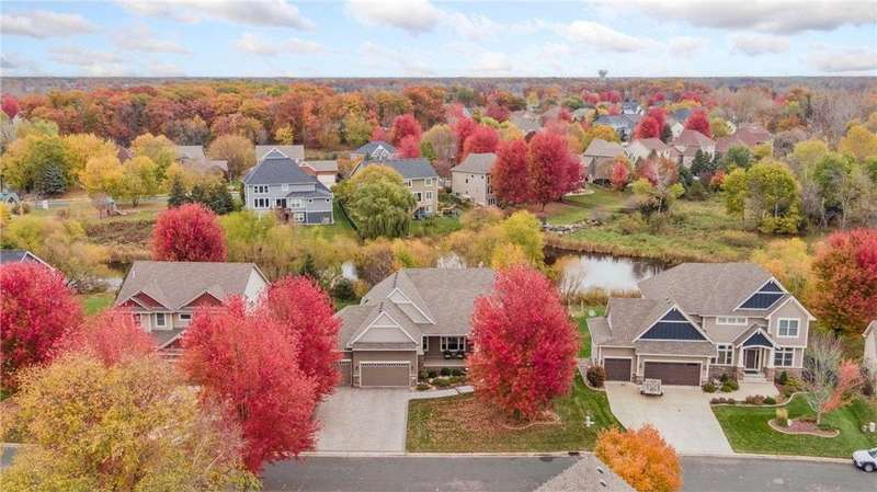 Beautiful Executive Rambler in the sought after location of Aspen Bay in The Lakes of Radisson! This stunning home features High End Finishes including 11' ceilings throughout the main level with Bold Enameled Millwork, Gleaming Hardwood Flooring, Great Lighting, a Chef's Kitchen with Custom Gourmet Built-In Appliances, Huge Center Island, Walk-In Pantry, Informal Dining & A Grilling Deck. The Great Room complete with Fireplace & Entertainment Center overlooks the very private setting and Nature Pond. Formal Dining for your parties and a Private Study for your Home Office. Main Floor Laundry and Spacious Main Floor Primary Suite which walks out to a comfortable deck overlooking the Pond & complete with Custom Walk-In Closets and an Elegant Private Bathroom. You will love the Lower-Level Family Room including the Fireplace & Entertainment Center which walks out to the Private Patio & Featured Outdoor Kitchen for your absolute private setting or Reside in the 4 Season Porch. The Complete Wet Bar with Dishwasher & Refrigerator including the Wine Room is perfect for entertaining your friends. The Lower level also includes 2 other Bathrooms and 3 Bedrooms (one of which is currently used as the Exercise Room. The Storage Room is Huge and perfect for all your Seasonal Storage. The Homes Exterior is Sided with LP Smart Siding & Tastefully accented with Stone Finishes. Enjoy the Covered Front Porch overlooking the manicured lawn, Crafted Paver Walkway & Driveway. Perfect in The Lakes of Radisson!