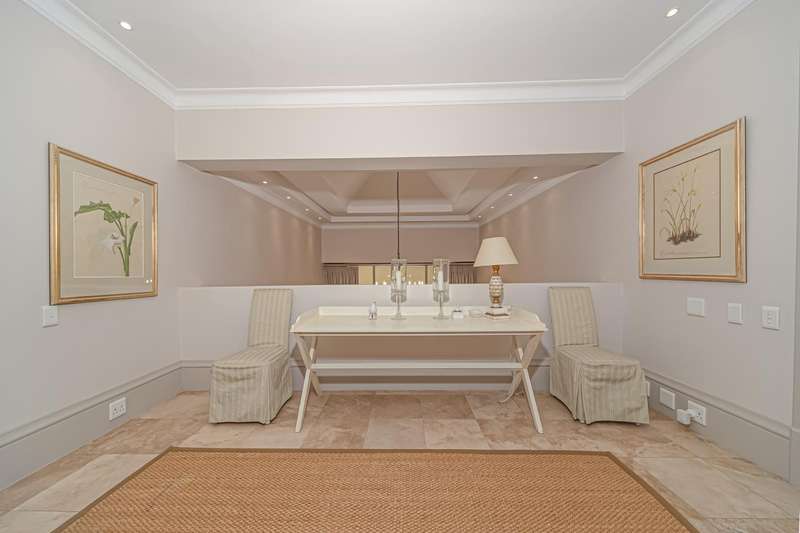 OFFERED AT A NEGOTIATED PRICE. Situated in a secure, boomed-off road with 24-hour guarded access, this elegant cluster home blends modern living with classical charm. A grand triple-volume entrance with a sweeping staircase sets the tone for refined interiors and effortless flow. Downstairs: Private Guest bedroom en-suite, currently used as a study. A Formal lounge with fireplace and traditional 10 seater dining room. The open-plan family living area includes; a cosy lounge with fireplace, dining space, and a gourmet kitchen with high-end appliances, scullery, and laundry - all leading to the immaculate garden. A staff room, double garage, and ample open parking add convenience. Upstairs: A spacious landing overlooks the dining area and outdoors, ideal as an open study. Three sun-filled bedrooms, each with private balconies or garden views. Two bedrooms are en-suite, with the option to easily convert the third. The main suite features a walk-in dressing area and luxurious bathroom. Outdoors: Manicured lawns embrace the swimming pool, poolside lounge, and dining area. Tranquil koi ponds, hedge-framed rose beds, and mature trees along the boundary create privacy, peace, and natural beauty. Key Features: Secure cluster estate in prime Hyde Park Triple-volume entrance with sweeping staircase Formal and family living spaces with fireplaces Gourmet kitchen with scullery & laundry 4th en-suite bedroom or private study Outdoor entertainment with pool, koi ponds & landscaped gardens 3 bedrooms (option for 3 en-suite), main with walk-in dressing area Double garage, staff accommodation & ample parking A home of timeless elegance and secure family living in Hyde Park.