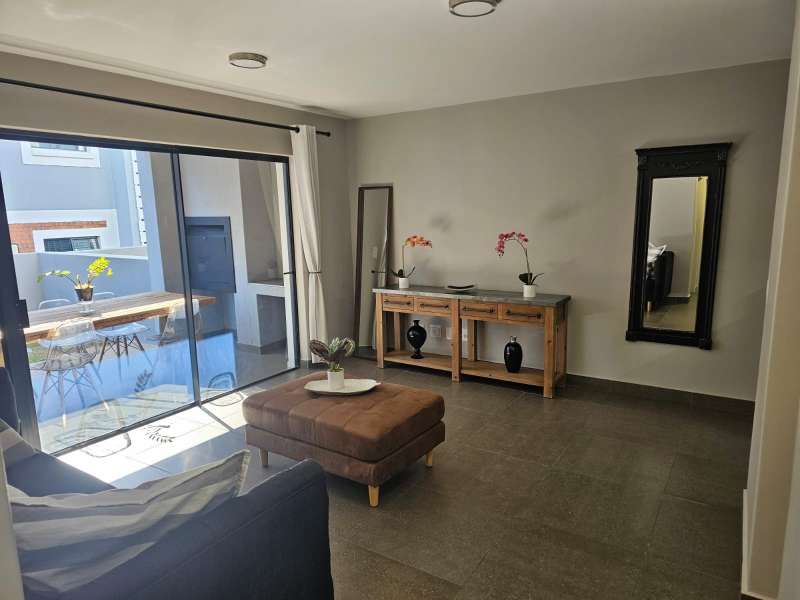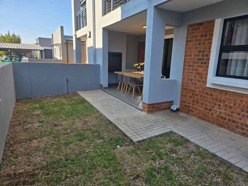 Discover the epitome of contemporary living in our brand new, meticulously crafted 2-bedroom, 1.5-bathroom ground floor apartment. Nestled in a secure and serene community, this residence is designed to elevate your lifestyle with a perfect blend of comfort, style, and security. Step into a world of sophistication where every detail has been carefully curated. Enjoy the elegance of high-end finishes throughout, complemented by extra high ceilings that create a sense of spaciousness and grandeur. Indulge in the seamless fusion of style and functionality with our open-plan lounge and kitchen. Granite tops and an under-counter oven add a touch of modern luxury to your culinary space, making it a joy to entertain and create memorable moments. Relax and unwind on your private patio, complete with a built-in braai for those delightful outdoor gatherings. A small garden space provides the perfect oasis for greenery enthusiasts or a tranquil retreat at the end of the day. Enjoy the perks of community living with access to a refreshing communal pool, play areas for the little ones, and a clubhouse equipped with braai facilities. It is the ideal setting for socializing and creating lasting memories with friends and family. Your peace of mind is our priority. The property is secured by a 2-meter electric perimeter fence, ensuring your privacy and safety. State-of-the-art security cameras in public areas, biometric access control, and a ground-floor unit design contribute to a secure and tranquil living environment. Do not miss the opportunity to own a slice of modern luxury in this ground-floor gem. Immerse yourself in a lifestyle defined by comfort, style, and security. Contact us now to schedule a viewing and make this dream apartment your new home