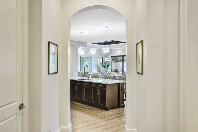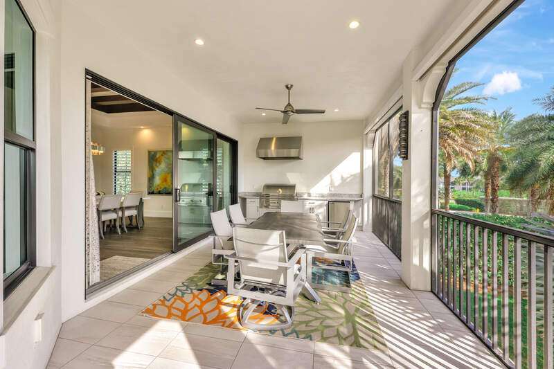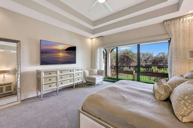 Sophisticated, Sunset-Filled Living in Talis Park's Coveted Corsica Neighborhood. Rarely available and highly sought-after, this three-bedroom plus den second-floor residence in Corsica at Talis Park presents a unique opportunity to own one of the community's most desirable floor plans in a premier location. Luxury and lifestyle meet in this exquisite second-floor coach home with private elevator, built in 2018 and located in the amenity-rich community of Talis Park. Spanning 3,382 sq ft of living space (4,402 total), this 3-bedroom + den/office, 3.5-bath residence delivers elegant design, expansive indoor-outdoor living, and high-end finishes throughout. Enter through a private courtyard into light-filled, open-concept living spaces designed for effortless entertaining and everyday comfort. The great room, dining area, and gourmet kitchen seamlessly connect and are highlighted by an 11-foot island, ceiling-high custom cabinetry, coffered ceilings, and natural gas-a true chef's dream. A spacious pantry, custom bar area, and floor-to-ceiling quartz accent wall with backlighting elevate the design even further. Step out onto the 53-foot lanai with rear-facing western exposure, long lake views, and an outdoor kitchen with built-in gas grill-a stunning setting for sunset dinners or quiet mornings. Every detail is curated for luxury living, from the dual private garages and private elevator to the thoughtful upgrades and designer finishes. Located just a short stroll from Talis Park's three-acre sports complex, residents enjoy access to six lighted Har-Tru tennis courts, four bocce lanes, a 50-foot lap pool, basketball hoops, a playground, tennis pro shop, and multiple on-site dining options. The community also features peaceful nature trails, a state-of-the-art fitness center (open 24/7), and an on-site spa offering a full range of services. Talis Park also features an award-winning championship 18-hole golf course designed by Greg Norman and Pete Dye, along with a nine-acre practice facility-a golfer's paradise nestled within one of Naples' most vibrant and active luxury communities. With its perfect balance of privacy, sophistication, and walkable access to resort-style amenities, this Corsica residence captures the essence of high-end Naples living.