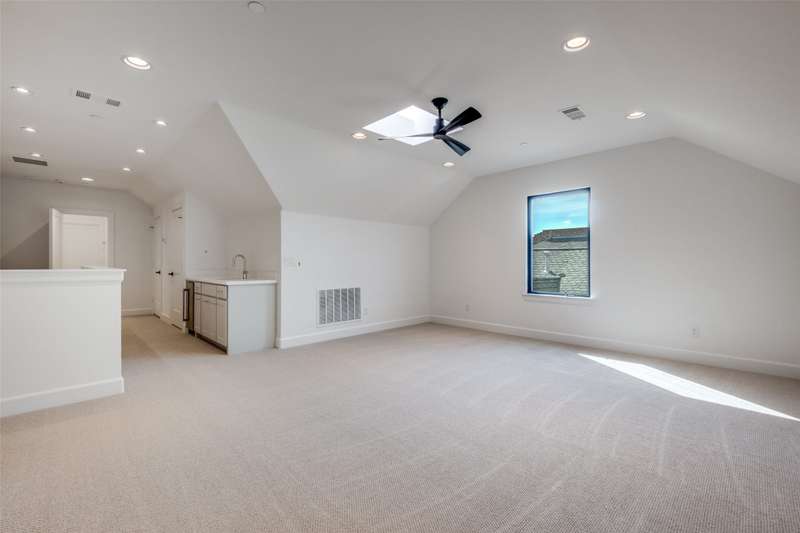 Look forward to being the first owner of this New Construction single-family attached home by well-known builder J Gregory Homes, with completion in December, 2025. Enjoy entertaining in your spacious living room with fireplace and wet bar, open to the dining area & kitchen, with glass doors out to the turfed side yard. Preparing meals will be a pleasure in your large island kitchen, featuring a breakfast bar, gas range with double electric ovens, built-in refrigerator, & walk-in pantry. The downstairs bedroom with ensuite bath serves as a guest suite or your private home office. Retreat upstairs to your primary bedroom suite and luxurious bath with dual vanities, freestanding tub, separate double shower, plus abundant closet space with built-in drawers & shelves. Three additional bedrooms with walk-in closets, two baths, and a full-size laundry room complete your second level. Your third level offers a multi-purpose game room or living area with wet bar plus a full bath. Enjoy a low maintenance lifestyle with all new amenities in a prime University Park location, walkable to Highland Park High School, Germany Park, and Lovers Lane shopping & dining!